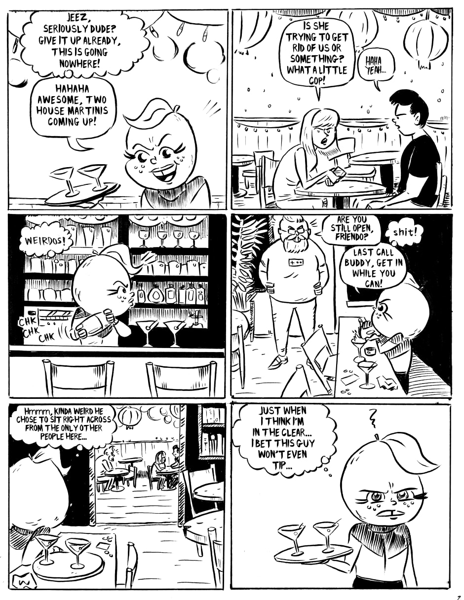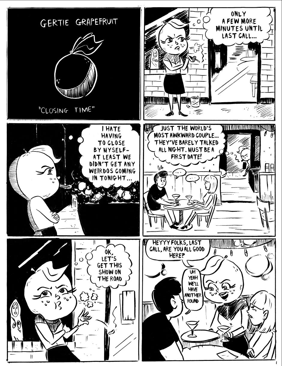 Gertie Grapefruit has a couple awkward customers to deal with while trying to close the bar she works at.