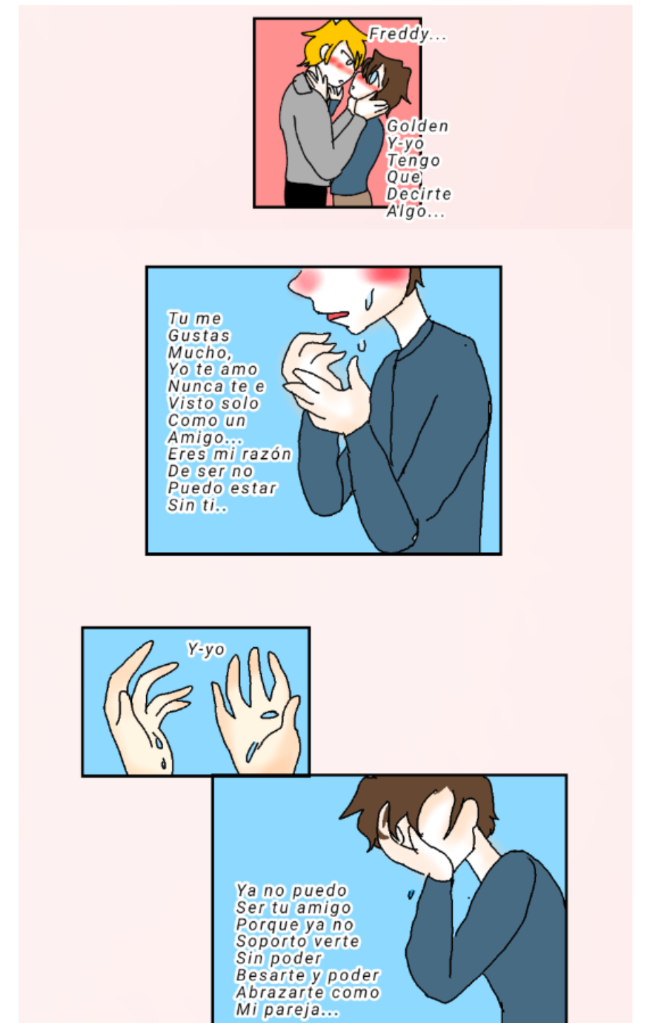 Freddy es un chico de secundaria el cual está enamorado de Golden uno de sus mejores amigos lo que el no sabe esque el tambien le gusta a Golden ¿confesaran sus sentimientos? Quedate a averiguarlo