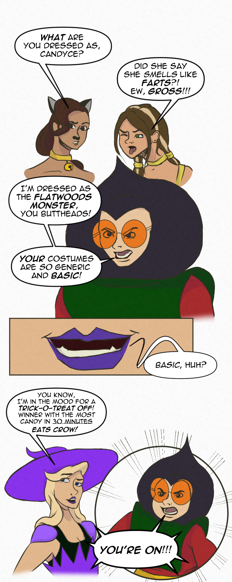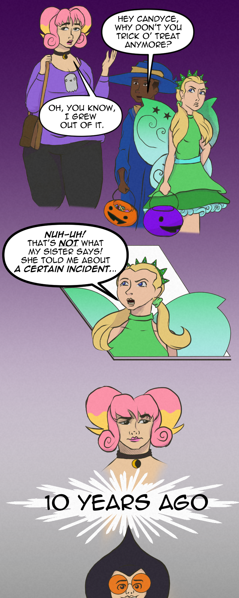 Okay guys, decided to try out full colour. This took much longer to make, but ultimately more rewarding. This was also made on Clip Studio, hence the textures, bubbles, and a few of the frames. Might just stick to cell shading next time I do colour.