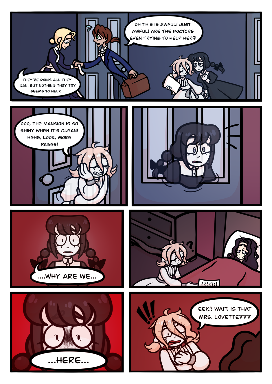 You’ve heard the classic tale about old haunted houses, but what about it from the ghosts perspective? Join Blanche and Rhoda, two deceased girls haunting the Victorian mansion known as Bluebell Manor, as they go on a grand adventure involving old memories, missing book pages, and demons! Made by @heebiejeebies_2 and @smilestrawbunny on instagram. (Updates every Wednesday)