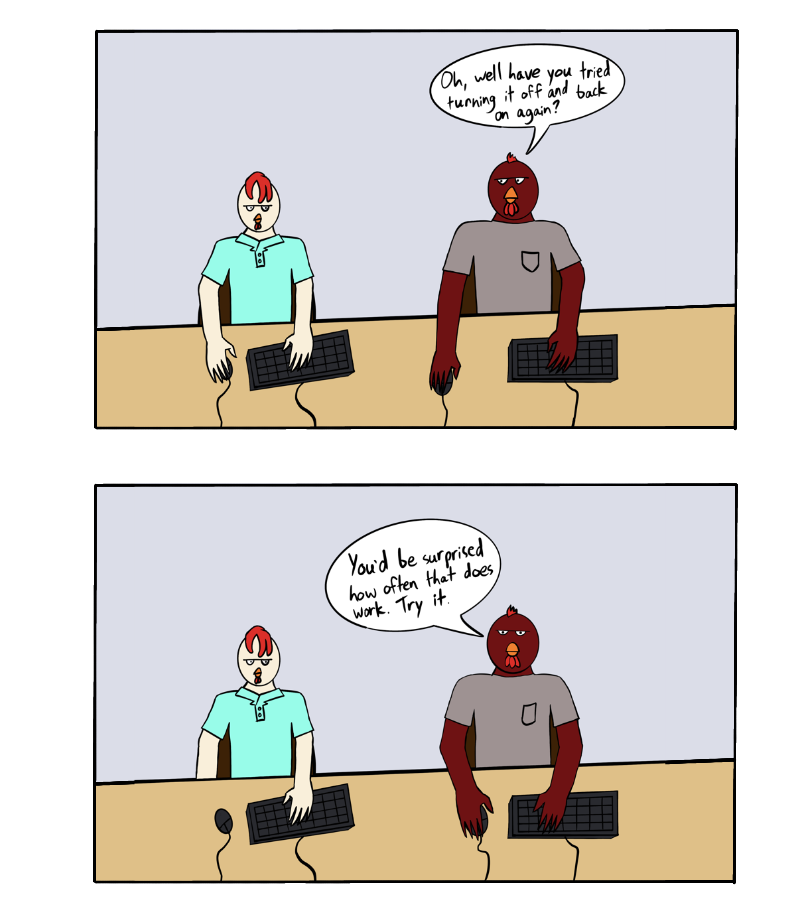 In this episode, we see the most versatile tool in any IT member's toolbelt, the classic "off and back on again" trick.