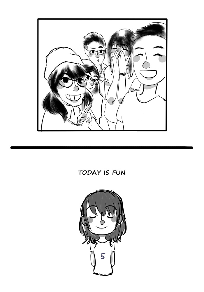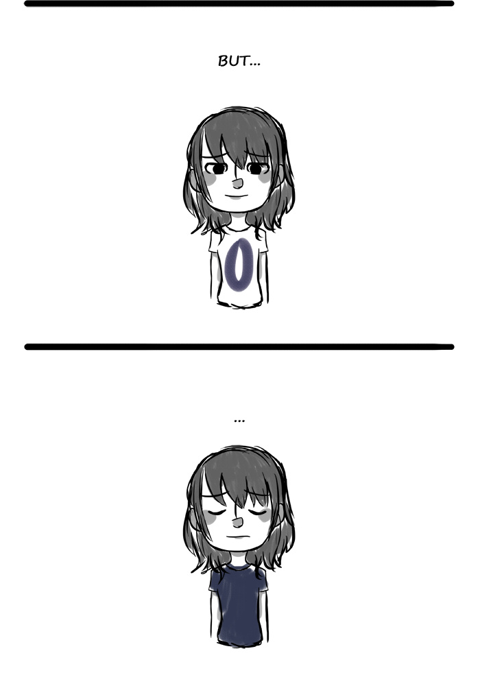I'm sorry it was cut halfway. But the ending was, i suddenly bursted crying while i was looking myself at the mirror, trying to fix myself. I don't really know why, but i was crying so hard and i can't figure out why. I couldn't finish the drawing the last part... It was hard.