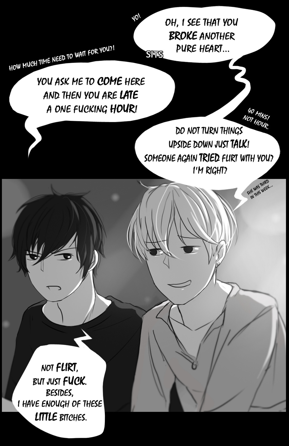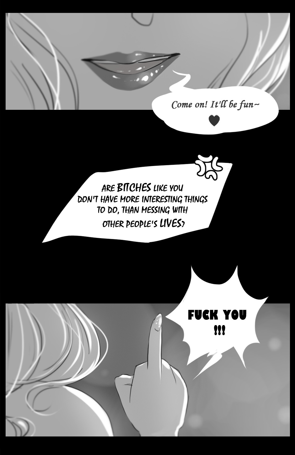 ILL GLADLY LOVE TO HELP YOU WITH YOUR ENGLISH IN YOUR UPDATED COMICS i like to help ppl a lot. Im a bit of a chatter box that rambles way too much and can't seem or probably someone wouldn't understand the words "SHUT THE EFF UP" if it were yelled at or written across the sky in my face