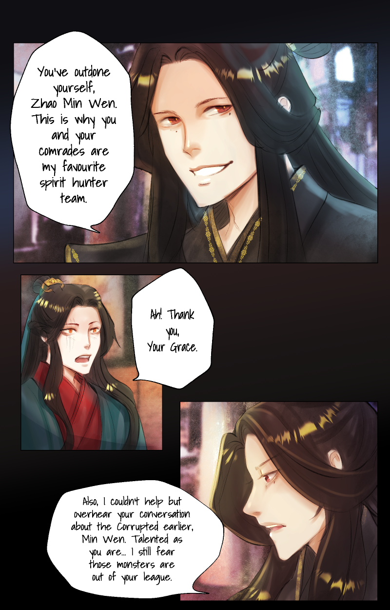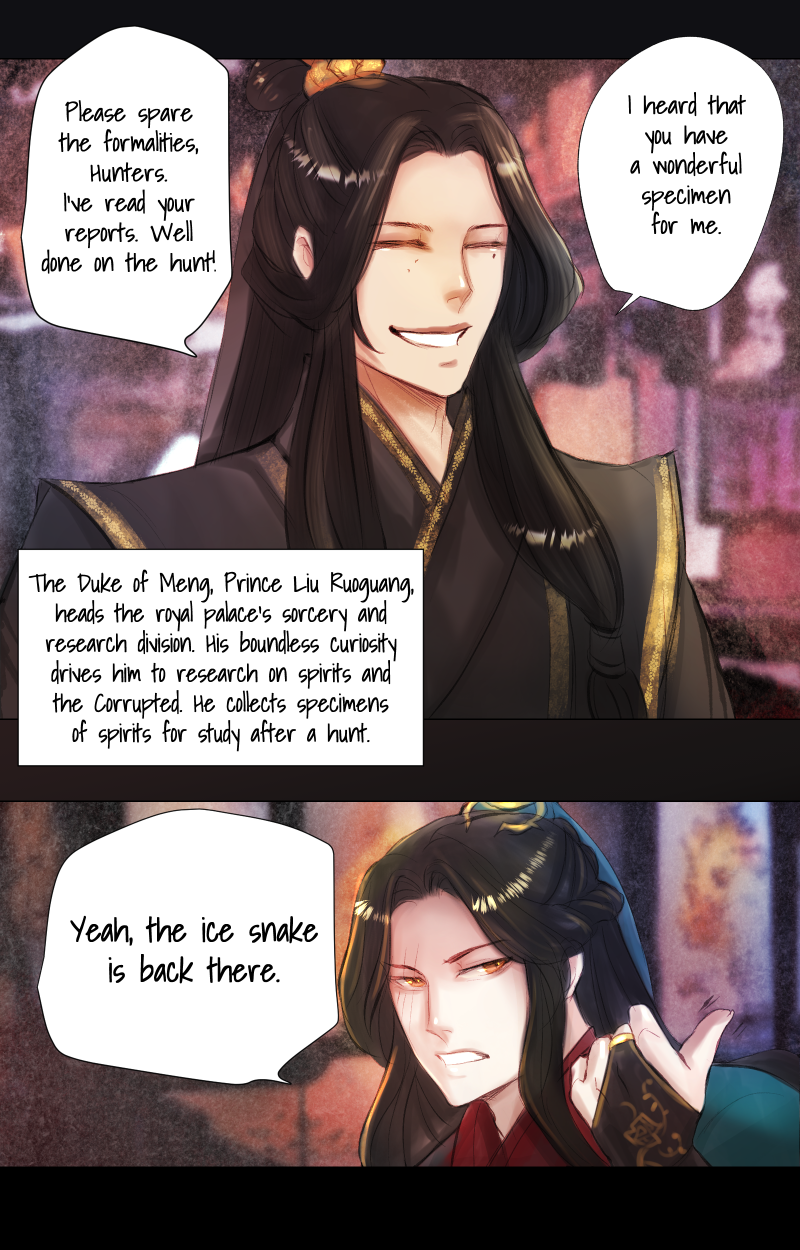 Zhao Min-Wen is the Emperor's youngest and most talented sorcerer who fights against the malicious spirits of the forests. When Min-Wen was assigned to hunt down a five-tailed fox spirit, he finds himself tangled in the fox's machinations.