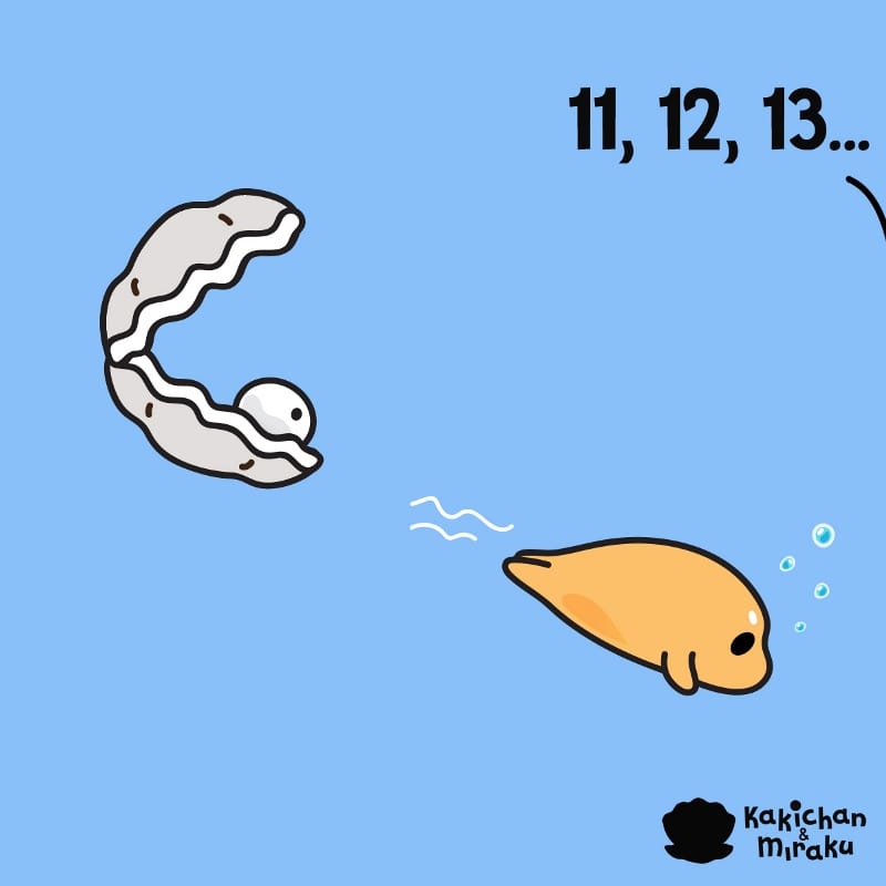 Kakichan is a mischievous boy oyster with a grey outer shell. He has a pearl friend Tama Chan living with him. Miraku chan is a sweet girl oyster with a little pink shell embedded on her head. She has a beautiful butter-yellow shell. They love to hang out at the beach, sometimes in the ocean where they meet all kinds of beautiful sea creatures. Illustrated by Max Wong and Shirielise.