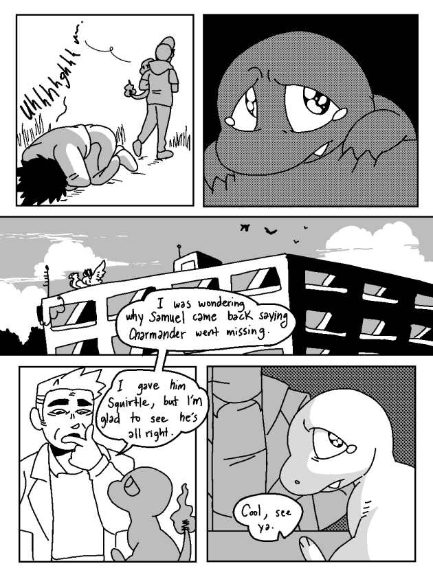 R is a shut-in, hapless trainer with no long-term goals. He has an uncanny ability to speak and communicate with Pokémon, and yet, he despises them. However, his love for Pokémon has yet to be revived, as he endures a perilous journey with his partner, Leeb the charmander.