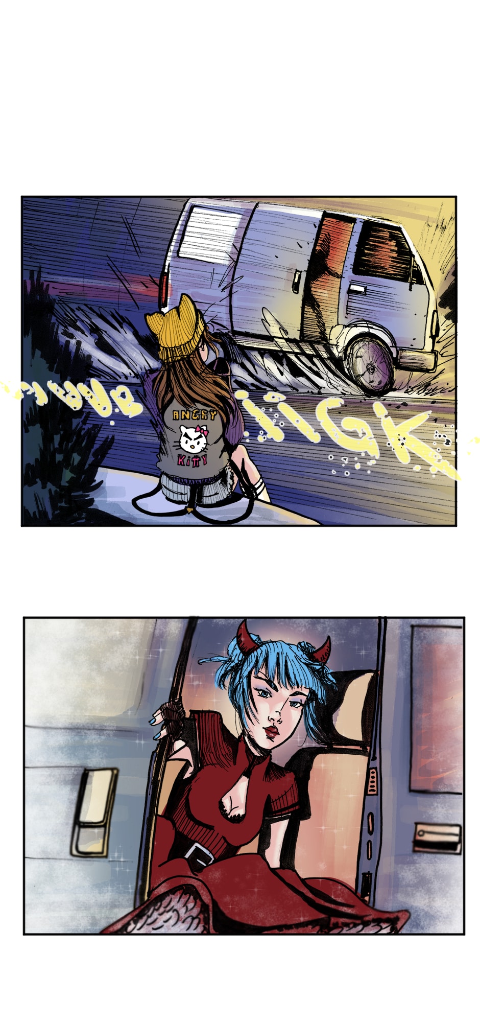 Jess es una adolescente virgen de 16 años presionada por su grupo de amigas para tener su primera vez con Bobby Hopkins, uno de los chicos populares de su clase. A regañadientes accede a tener una cita con Bobby la noche de Halloween pero Jess se acobarda y huye antes de pasar a la acción. Deprimida ahoga su patética existencia en alcohol hasta que todo cambia cuando conoce a Robin, una chica extrovertida y cantante de una banda de rock; la chica de la van.