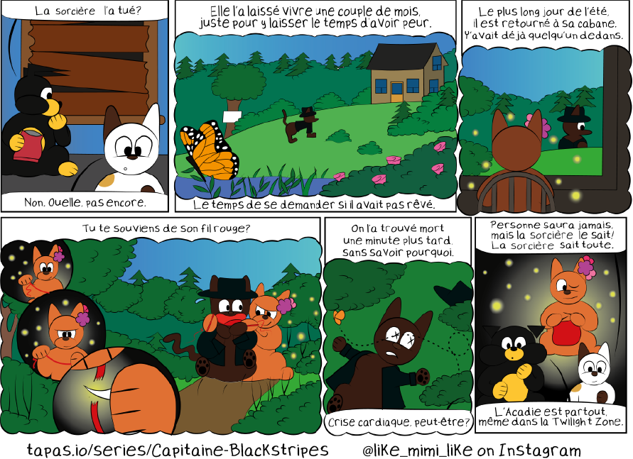 Ce genre d’histoire, avec la Taoueille (sorcière) et le Diable qui vole dans un canot a été popularisé par nos vieux curés cathos pour inculquer au bon peuple la peur du Diable et du “sauvage” mais y’a pas un épisode de Twilight Zone qui fini sans une petite morale, pas centrée sur les anges et les démons mais sur la nature humaine. Si je peut me prendre pour Rod Serling un instant...