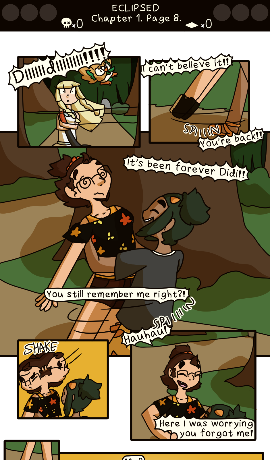 Hi hey hello! I've got good and bad news! Let's start with the bad, the backlog building is going really slowly.. Since I managed to injure my wrist like 3 weeks ago, it's kinda better now but too much drawing hurts still so I'm a tad slow as of now with the page making.. But the good news.. Eclipsed is kinda back! Until I feel confident about my backlog amount I'll be posting one page per month to keep the train rolling, even if a bit slowly.. I'll give another update next month!