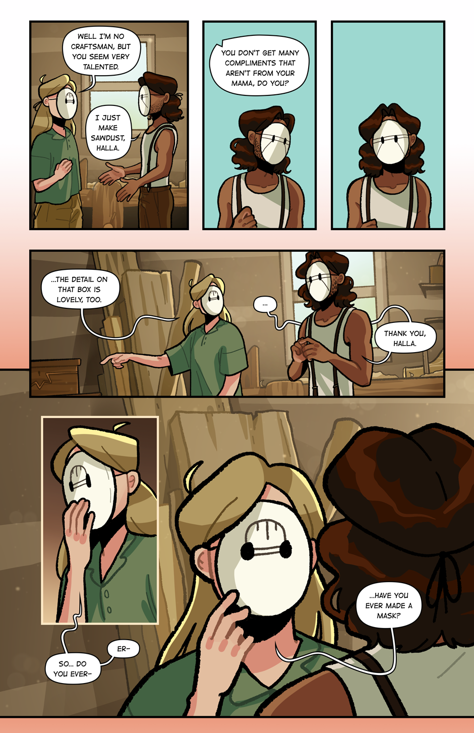 (Fun fact: Jon's line in panel 1 was actually a quote from my grandpa from a 90s newspaper article. He made rudimentary chainsaw sculptures.)