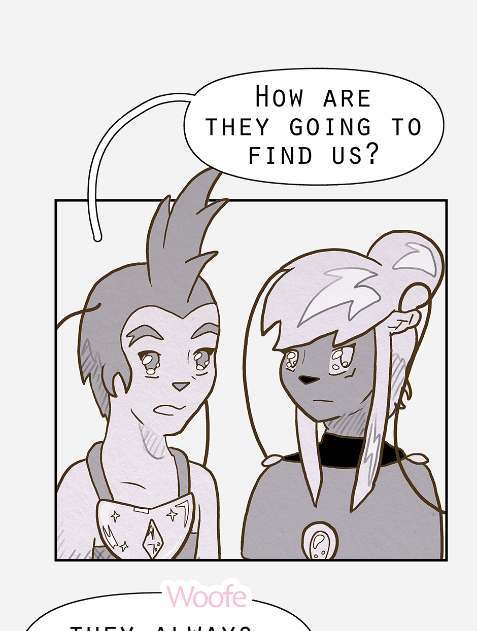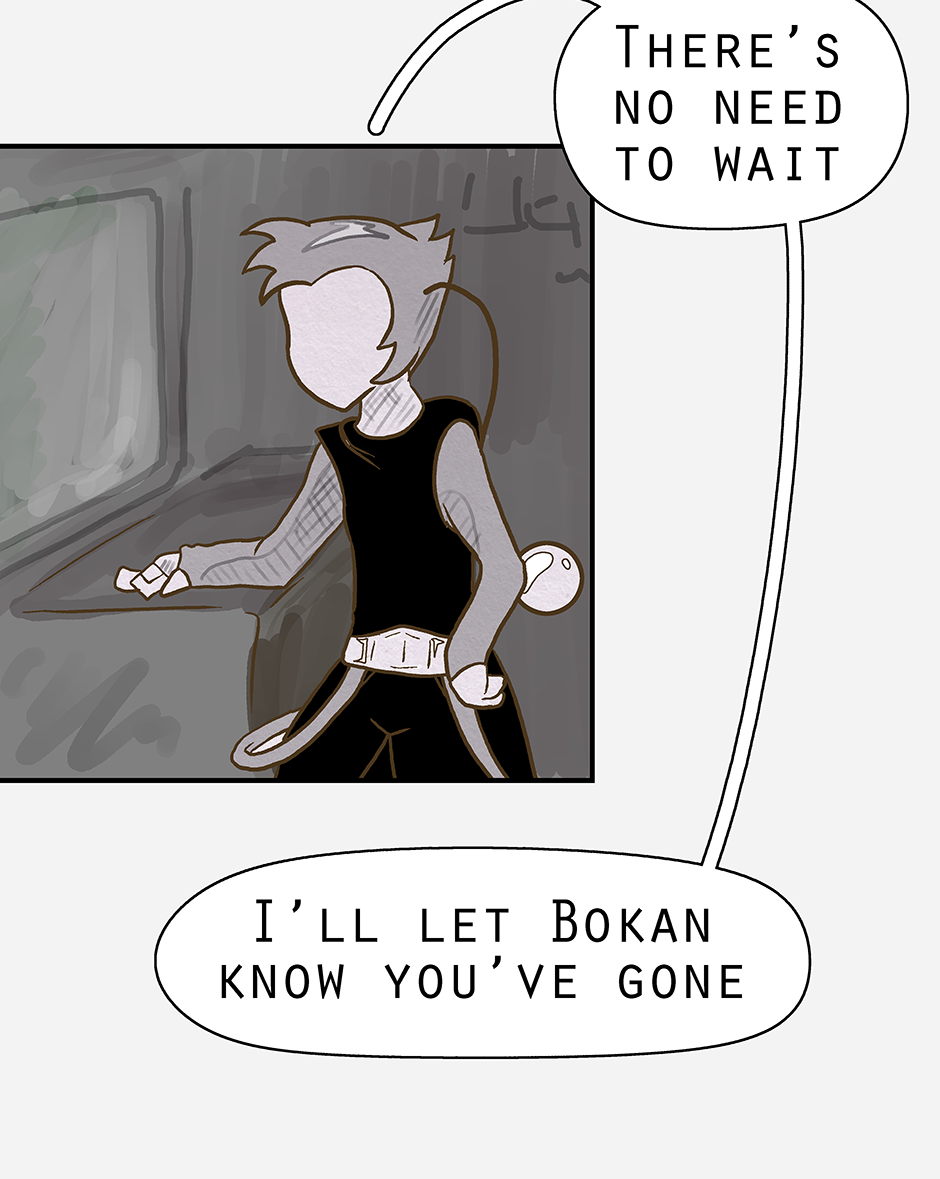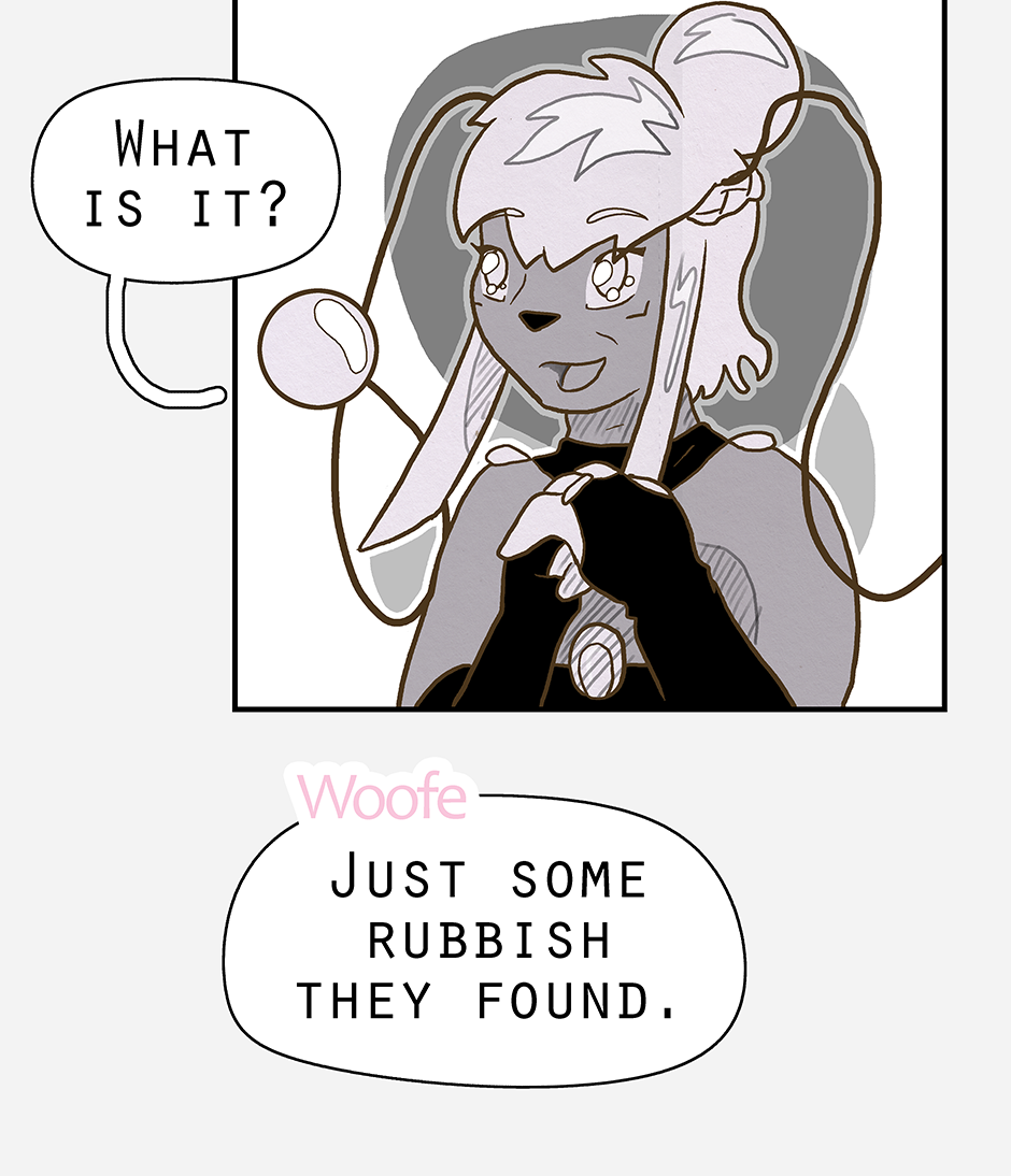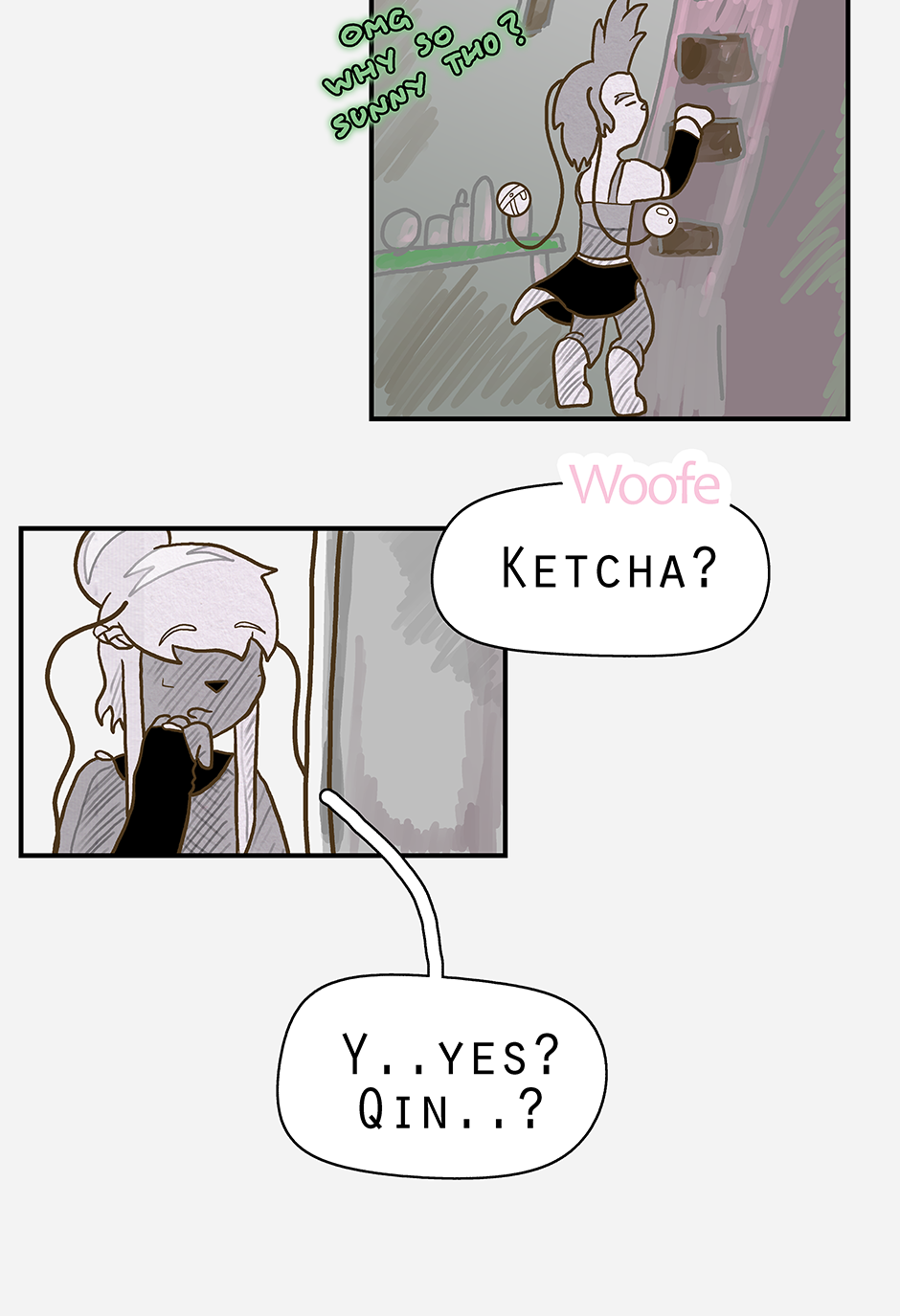 Ketcha arrives ready for the group to head out on a search for Ruska (and to lightly socialise). Woofe has concerns about this new person, while Qin is pre-occupied with thinking already that the worst has happened. Ketcha's biggest worry being their awkwardness.