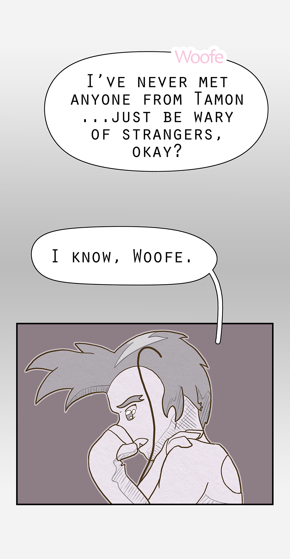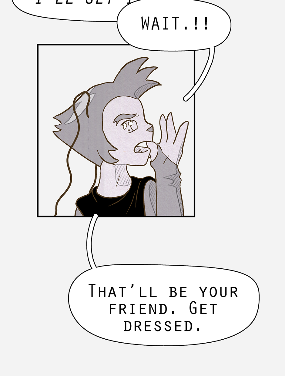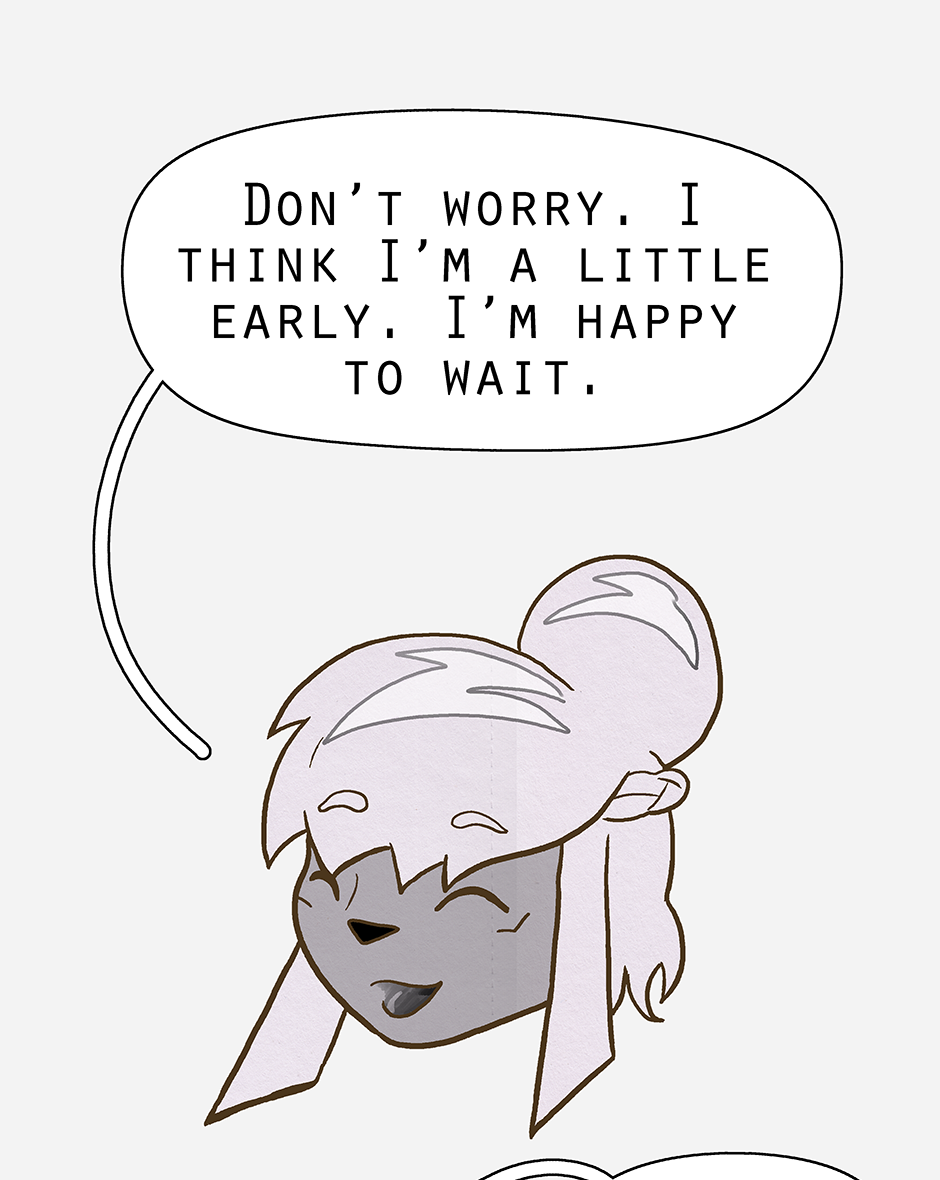 Ketcha arrives ready for the group to head out on a search for Ruska (and to lightly socialise). Woofe has concerns about this new person, while Qin is pre-occupied with thinking already that the worst has happened. Ketcha's biggest worry being their awkwardness.