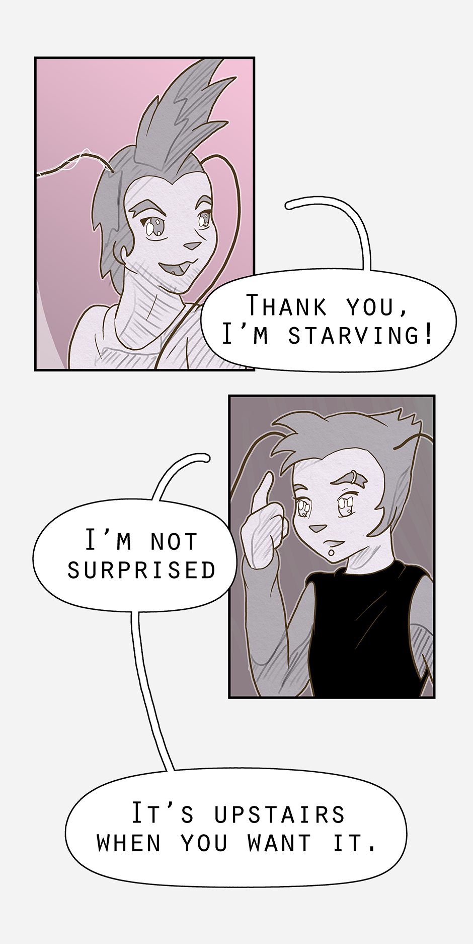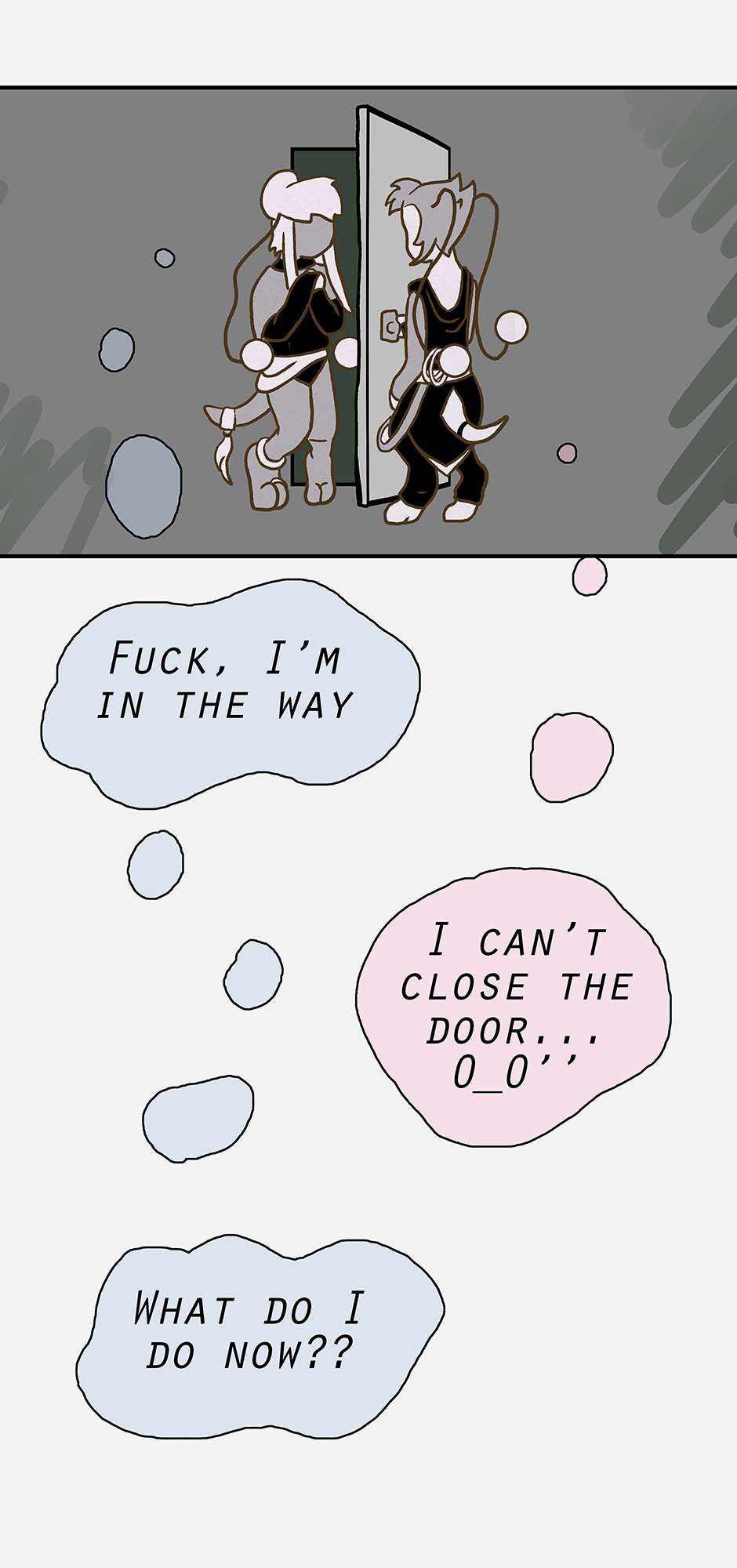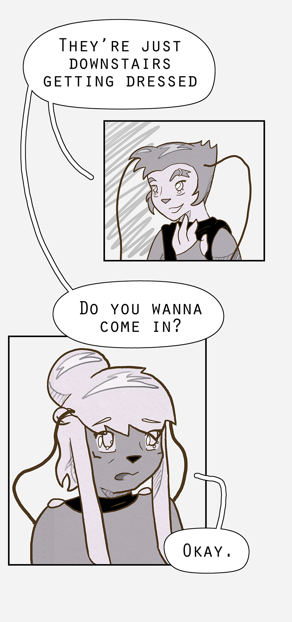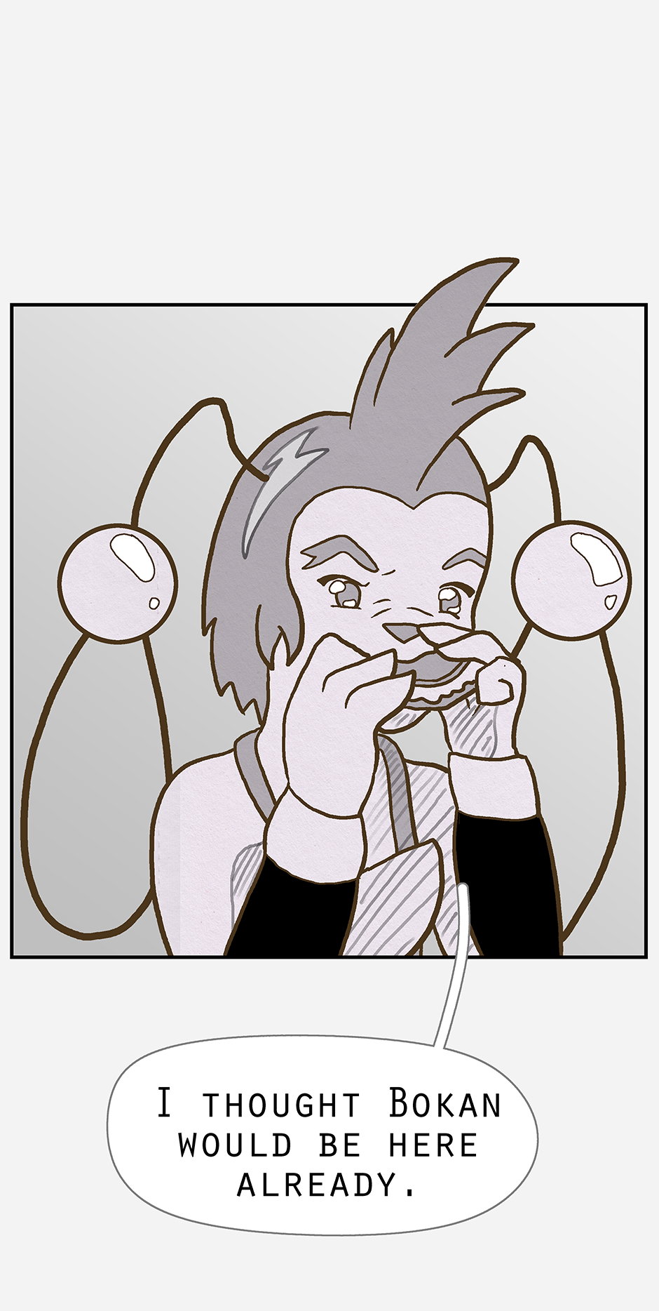 Ketcha arrives ready for the group to head out on a search for Ruska (and to lightly socialise). Woofe has concerns about this new person, while Qin is pre-occupied with thinking already that the worst has happened. Ketcha's biggest worry being their awkwardness.