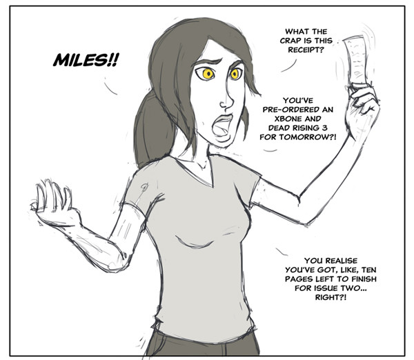 10 pages remaining until issue #2 is complete and ready to upload! (I'll try desperately to keep the Xbox's launch from stalling the project!)