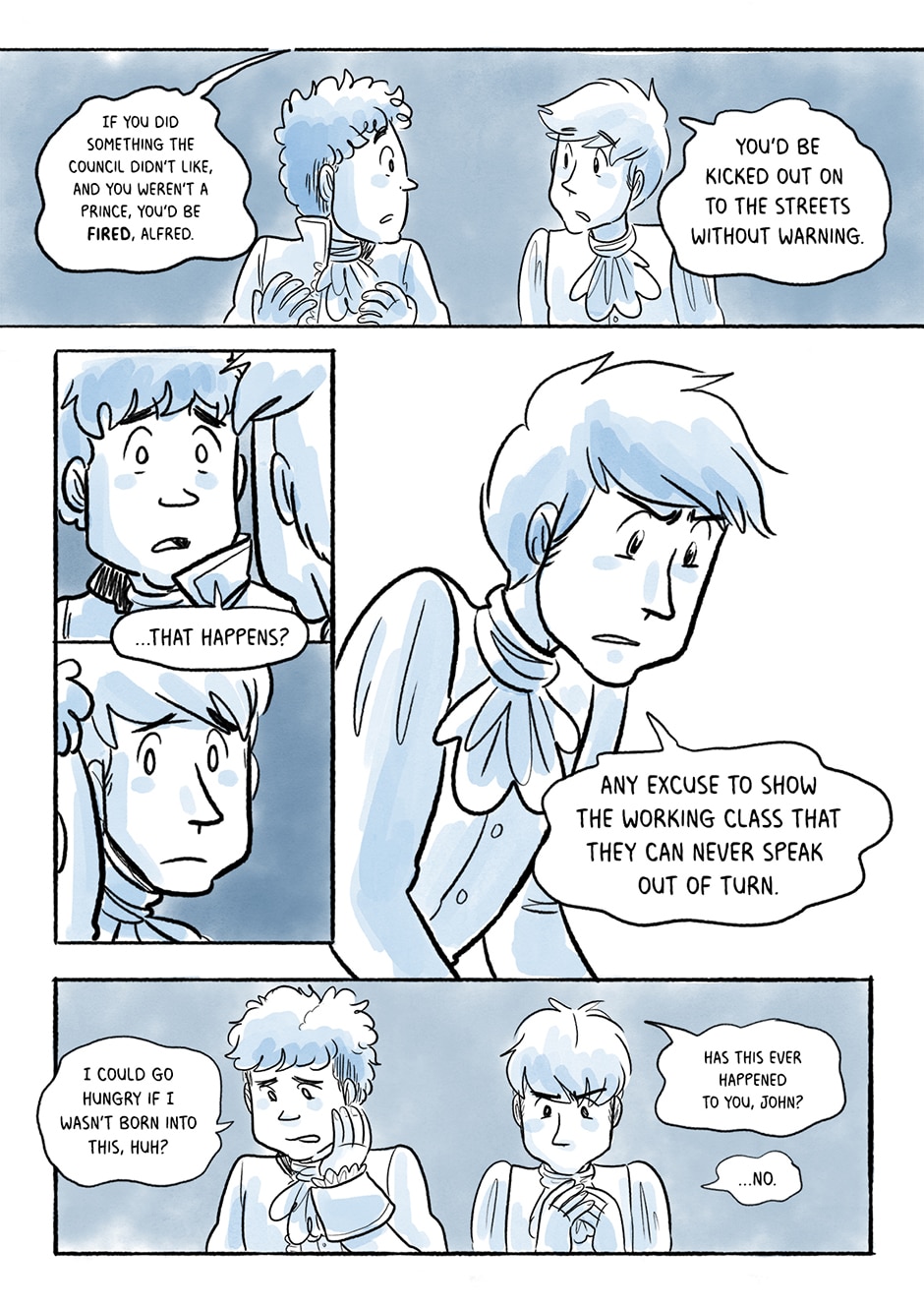Alfred is an autistic prince, struggling to fit in within high society and find a suitable husband before he becomes King. John is an impoverished commoner, determined to use his new job at the palace to help kick start a revolution for the working people. Both feel like outsiders, but find each other as they navigate the world of aristocrats.