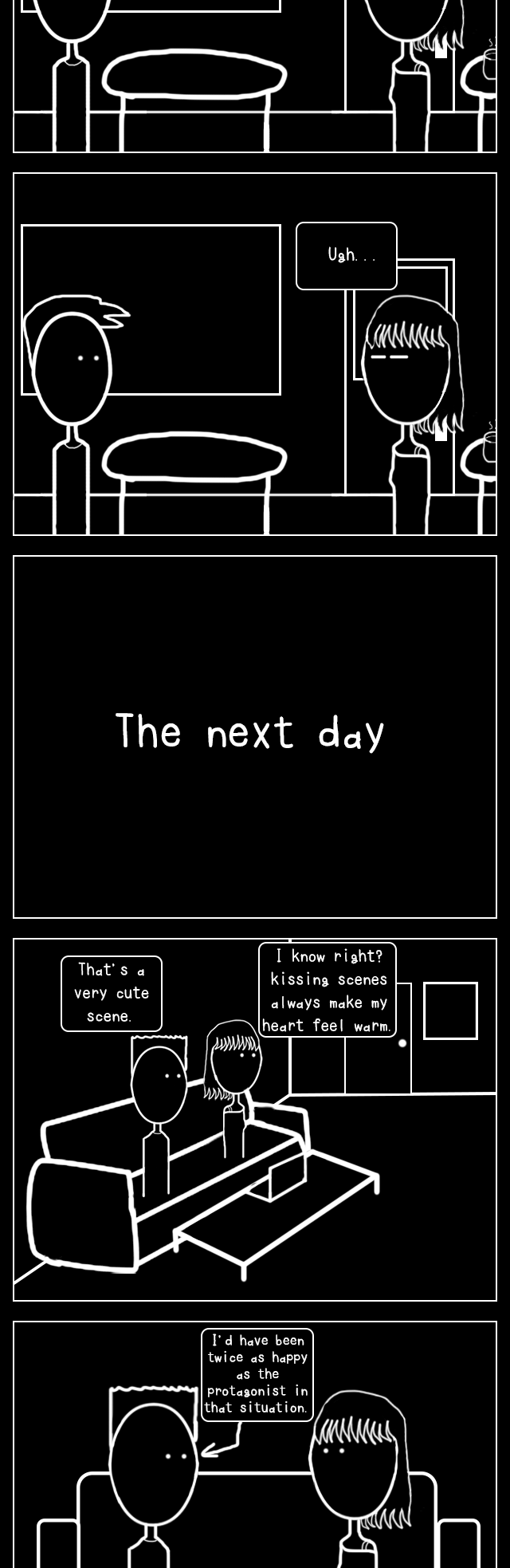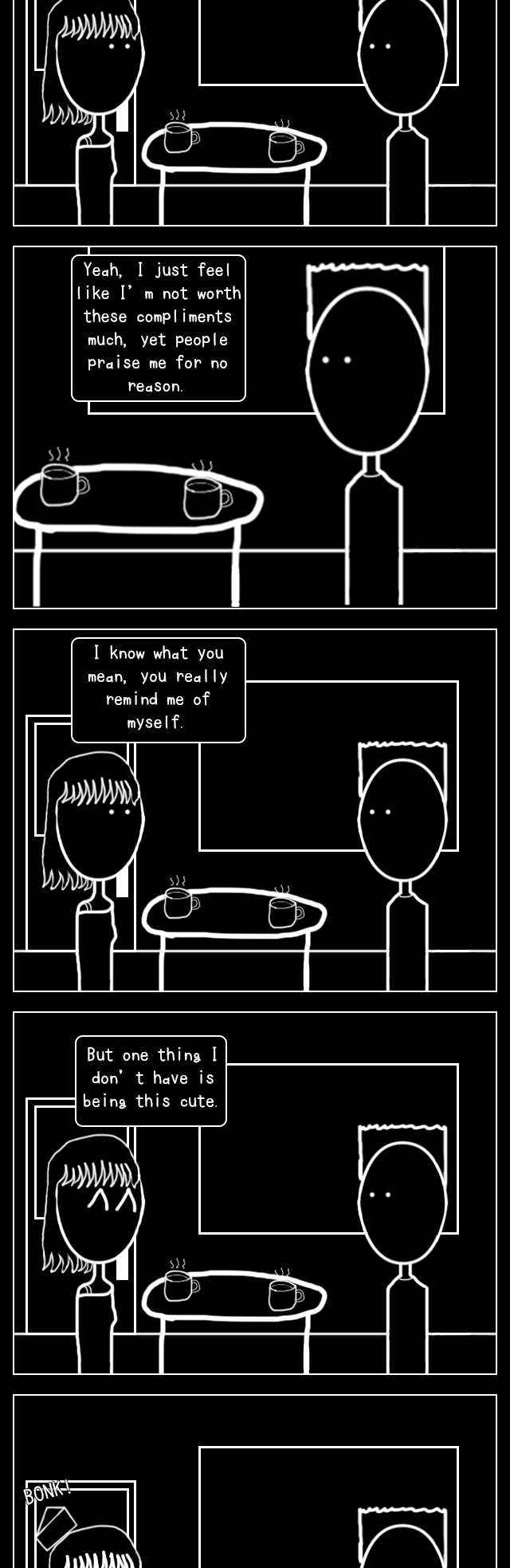 And not to mention that there's also some dark humor and edgy emphasis about having an obsession with a girl, one-sided love, traumatizing situations, all that jizz.
