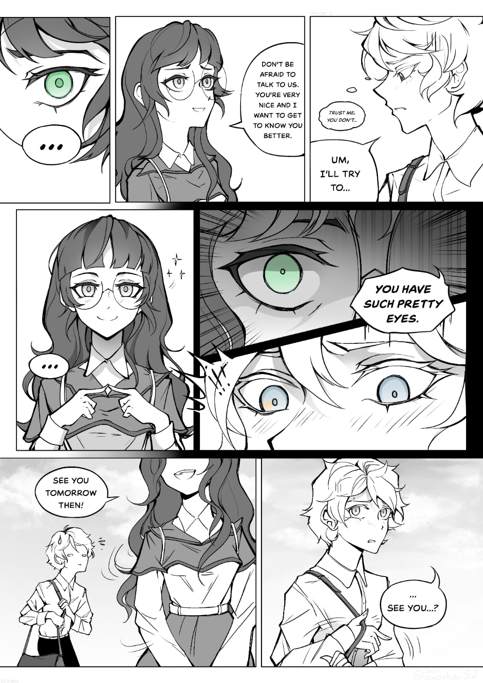 That comment about his eyes sounds creepy also you have a nice art style.