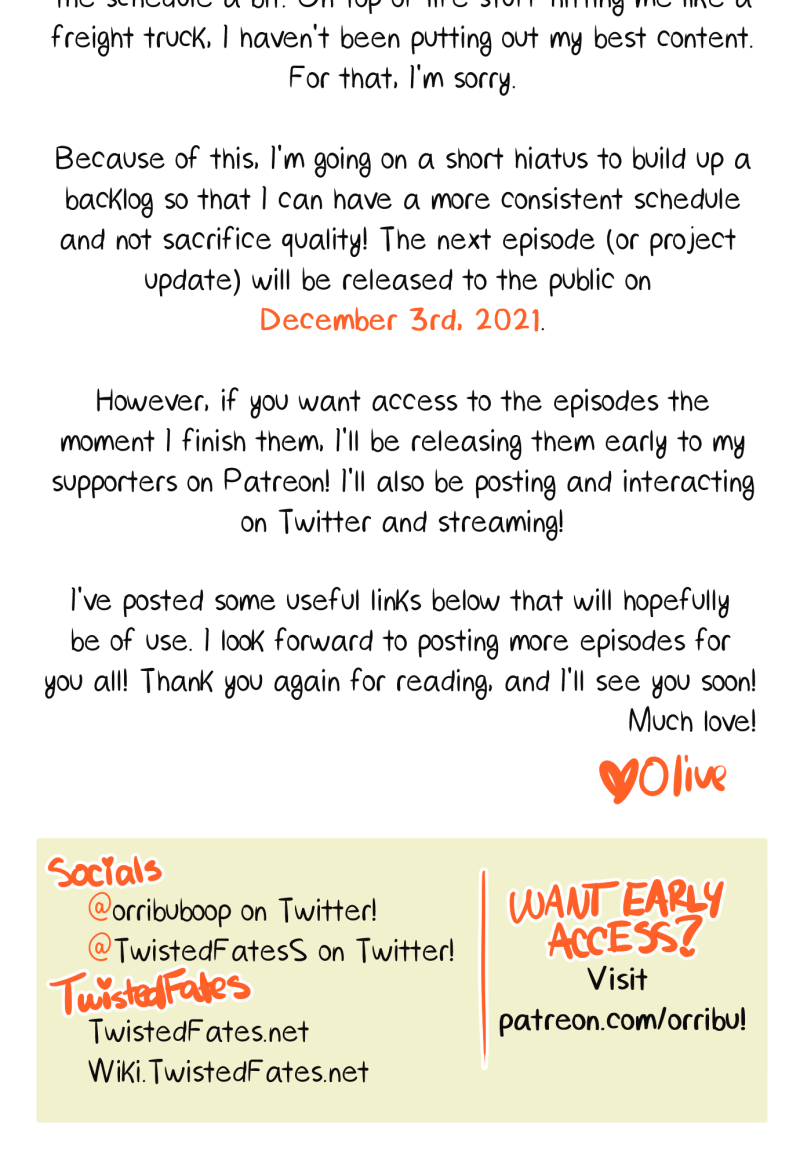 However, if you want access to the episodes the moment I finish them, I'll be releasing them early to my supporters on Patreon! I'll also be posting and interacting on Twitter and streaming!