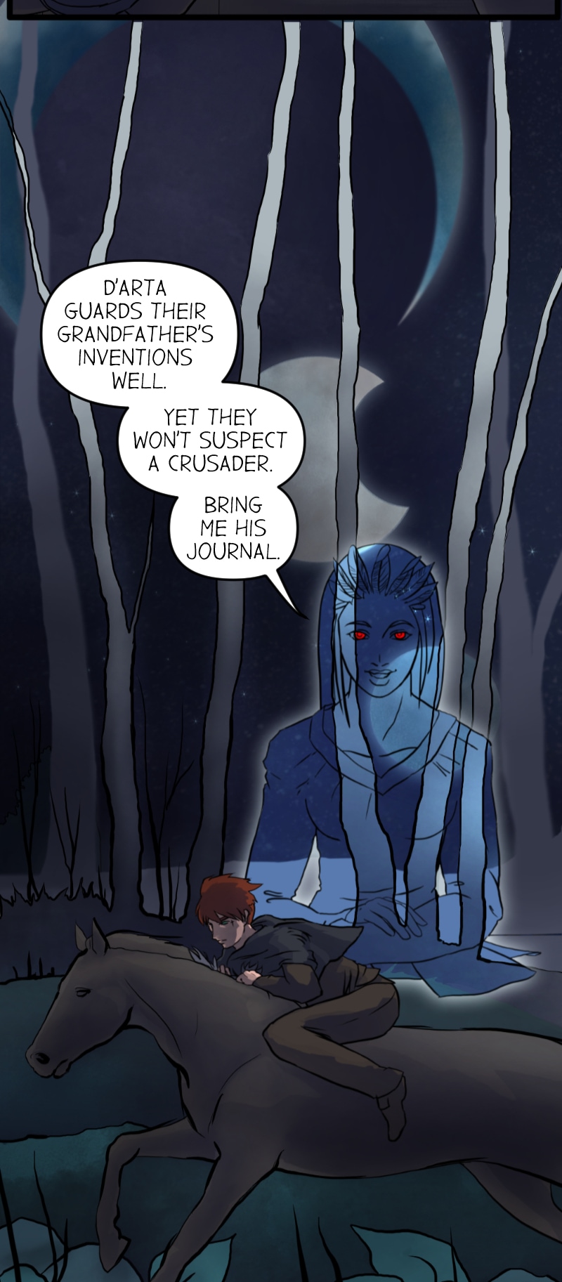 Thanks for reading! What's important in this chapter? Mark the Crusader stole a 'black book' and it's on his way to deliver it to Latia.