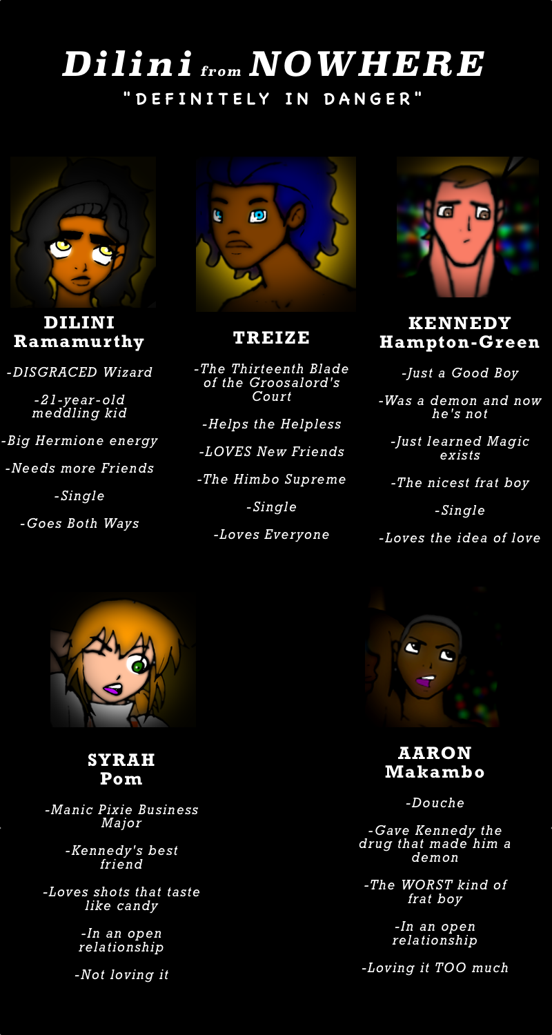 Exiled to the mortal realm for using Black Magic, magic school dropout and self-proclaimed prodigy, DILINI RAMAMURTHY protects the squishy humans from the forces of evil (and sometimes the forces of good) because they can't very well protect themselves, now can they?
