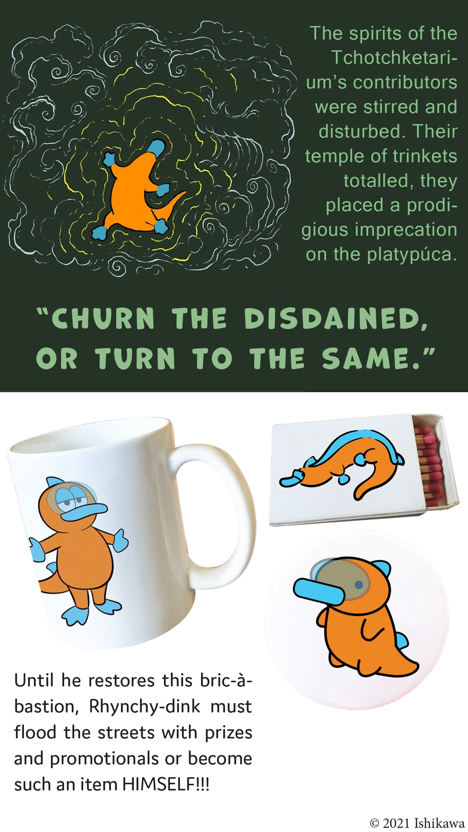 Rhynchy-dink the platypúca is cursed to make swag, or become swag.
