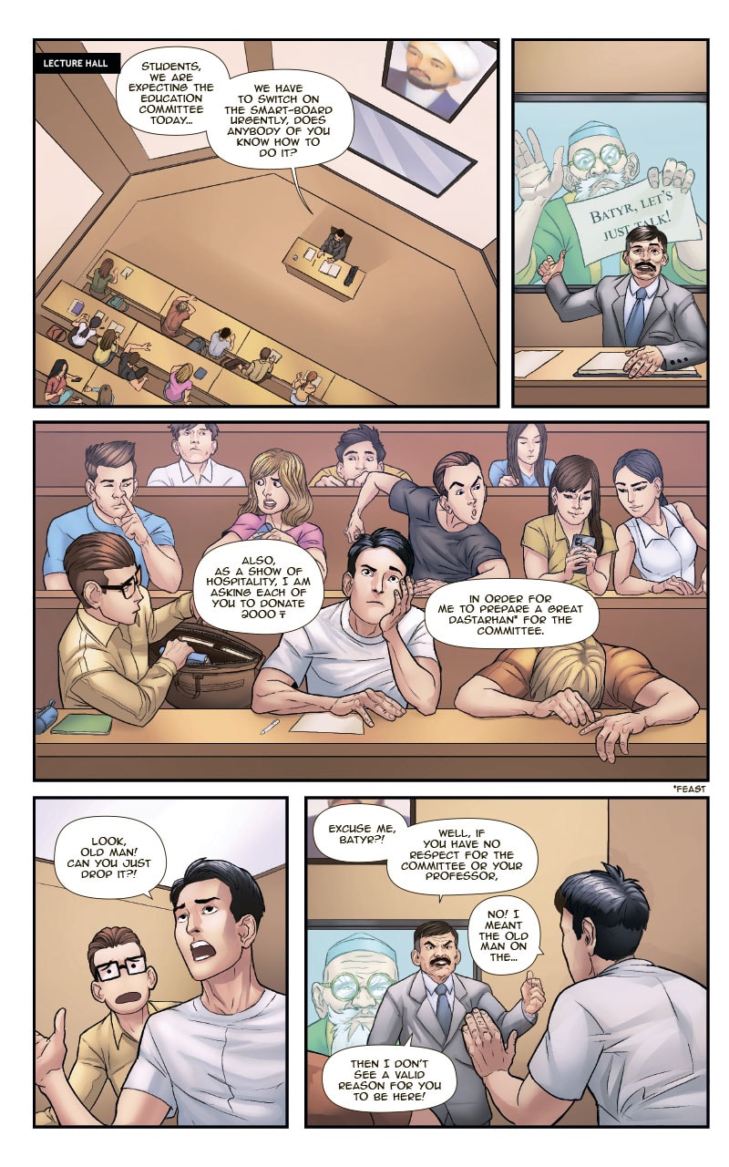 "KazakhMan Batyr"- is a story about a novice superhero Batyr. Batyr is a motivated, principled and kind young man, who holds the legendary ancient power of "SENIM", an innate power whose heritage has been forgotten with time. While he faces many challenges, he dreams of becoming a respected and successful hero... but as many things at the start, he faces public disapproval and cynicism in addition to the constant pressure from his parents, who want Batyr to continue studying law and have a “normal life”.