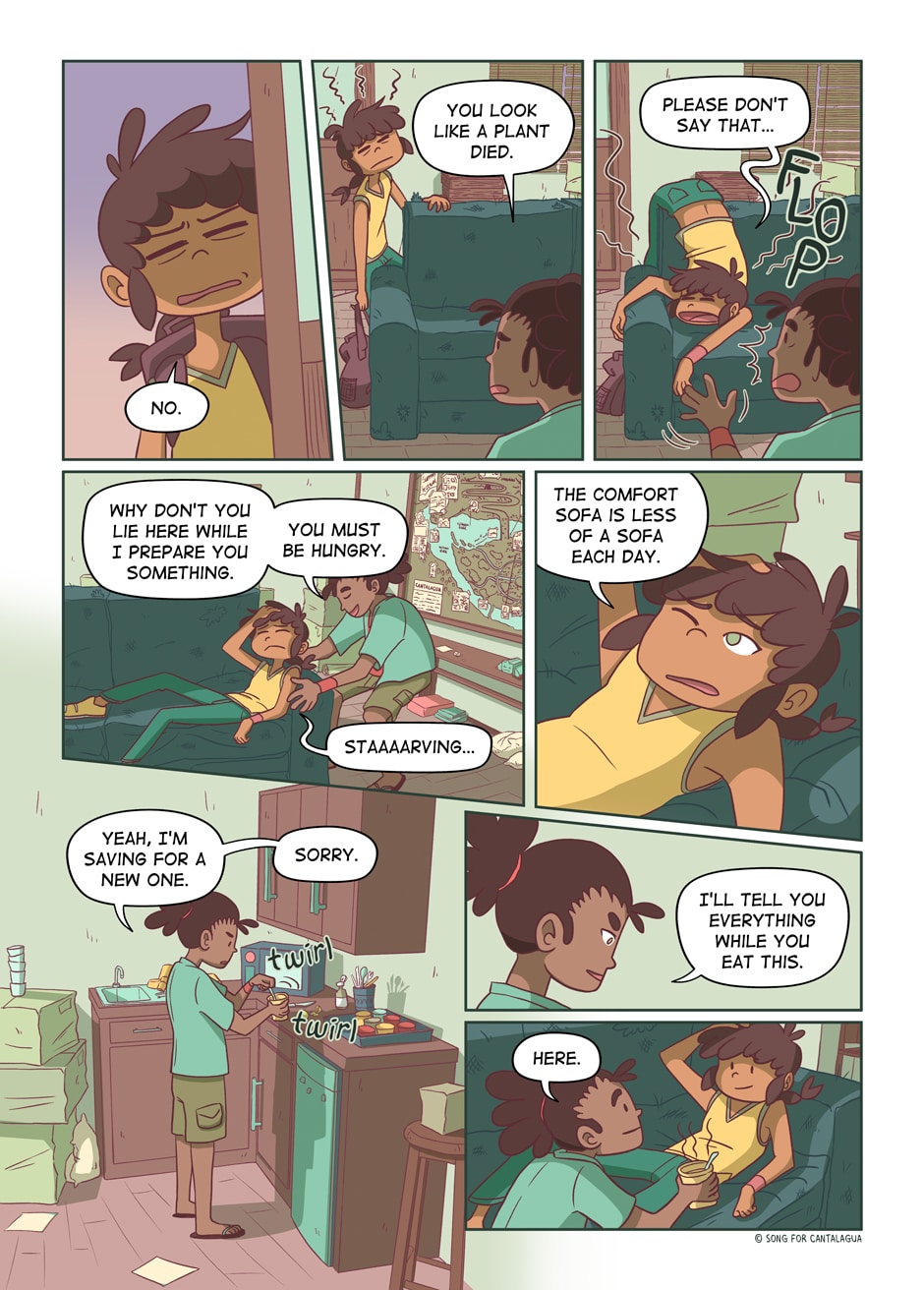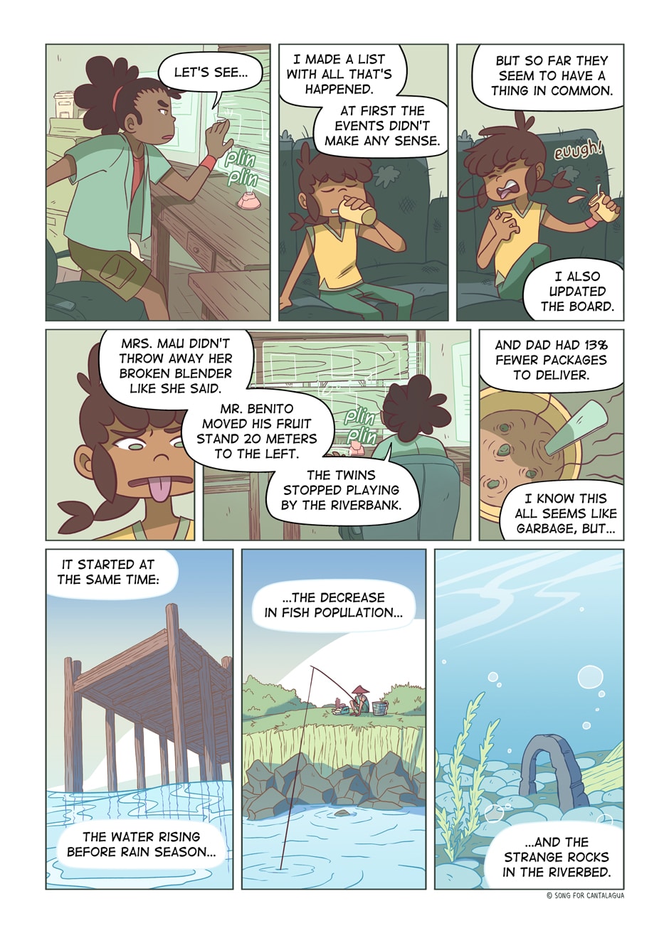 One day, the slow life of Cantalagua stirs up when strange debris appears and the rivers start rising. Nila and her friends Otto, a chronically tired videoblogger, and Clara, a sweet girl who seems more interested in someone than the mystery itself, team up to investigate the cause.