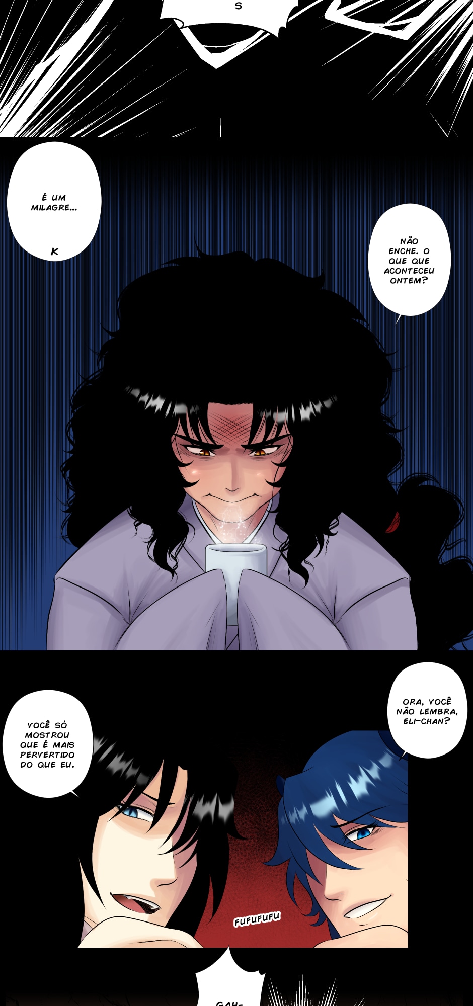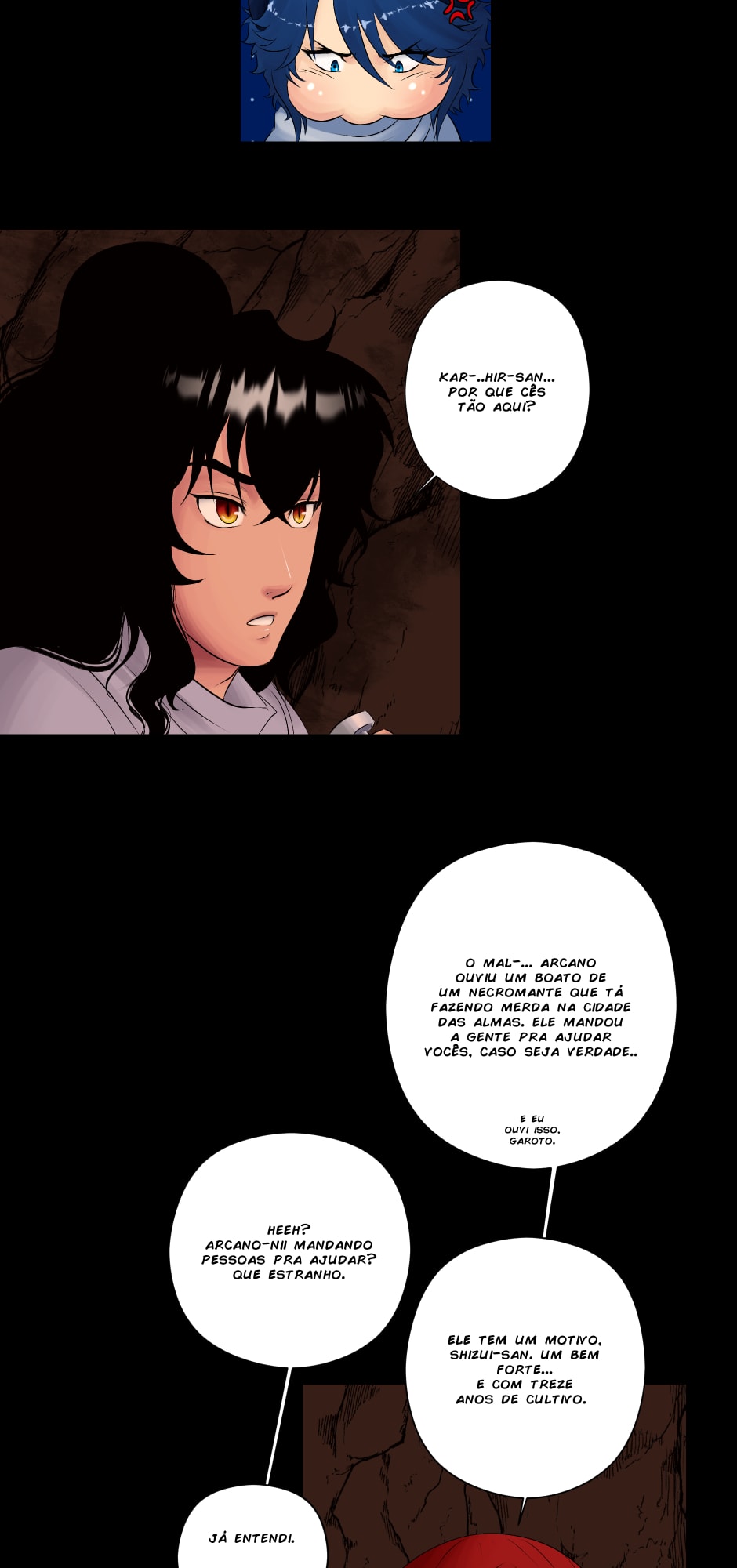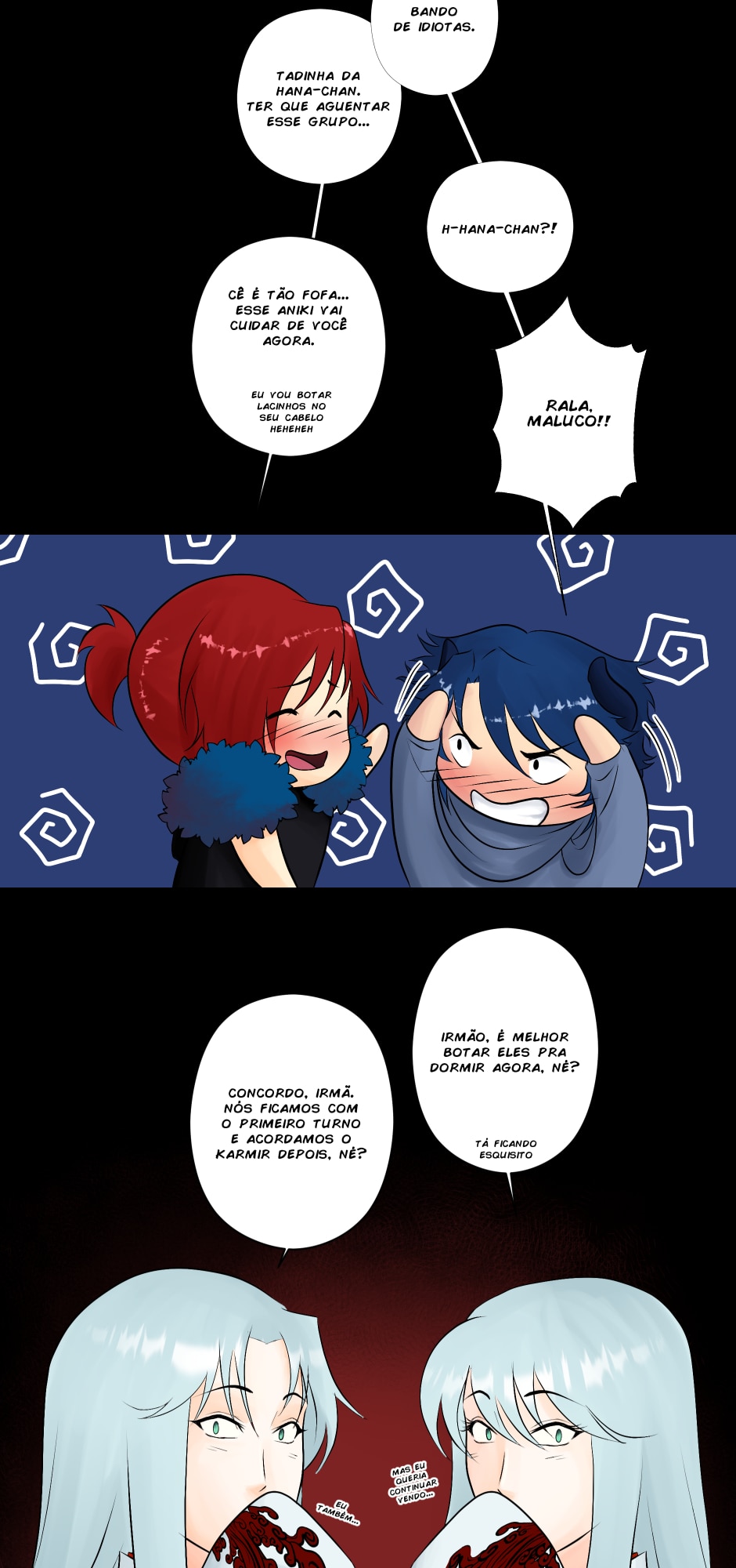 No canto, a cobra, o dragão e os ruivos observam incrédulos.