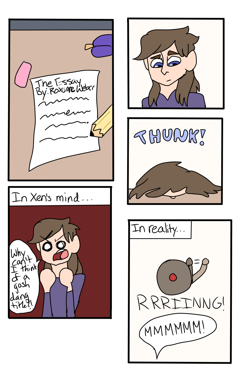 Roxanne/Xen is smart, but he can't think of a title for their essay. Typical. (I will be using every character's correct pronouns instead of what everybody else thinks they are)
