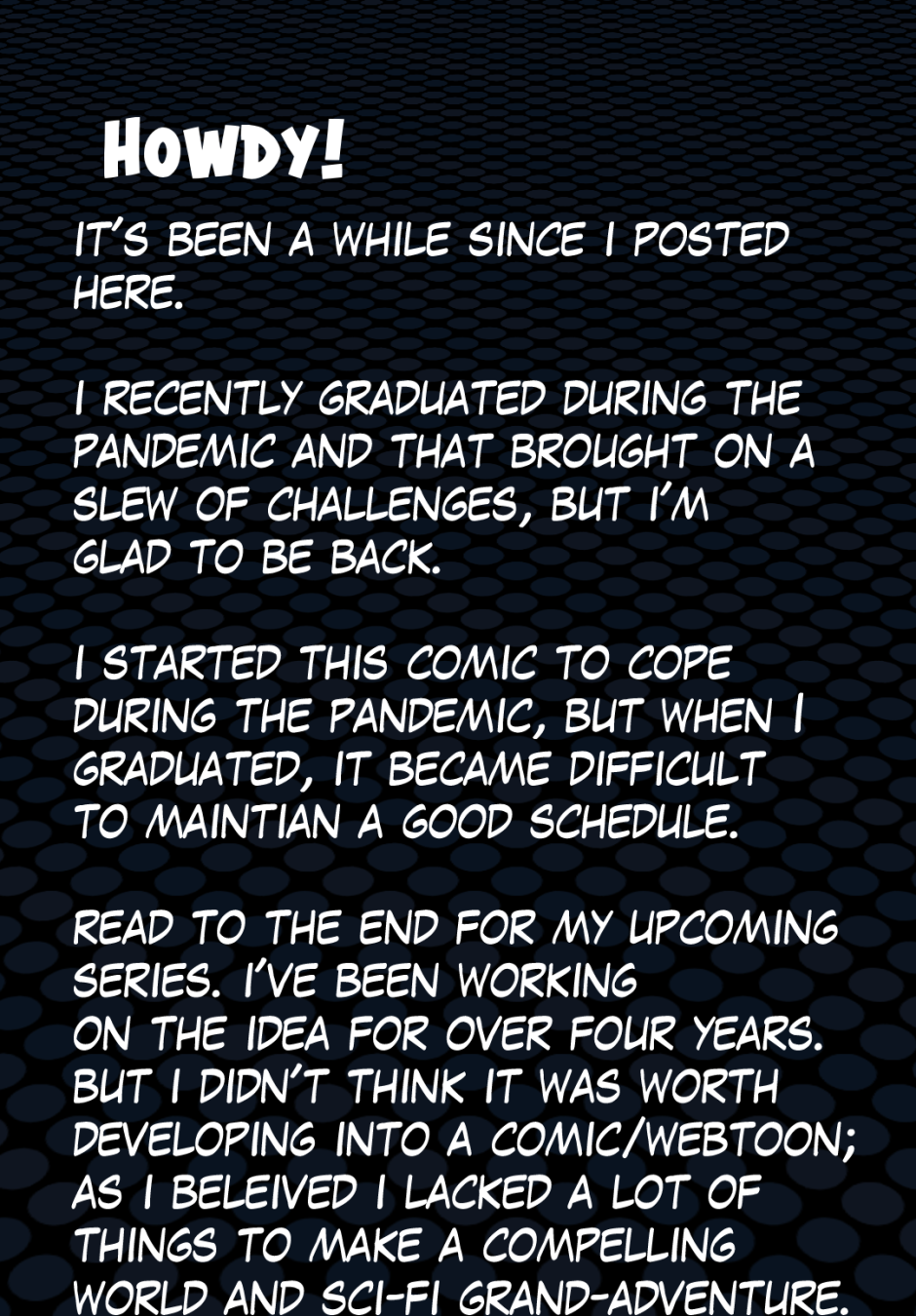 Hope you are excited for my new comic, this is probably my first comic in my original style, it makes me feel embarrassed knowing this is going into the world. But I can't give into my anxiety. See you in the next update.