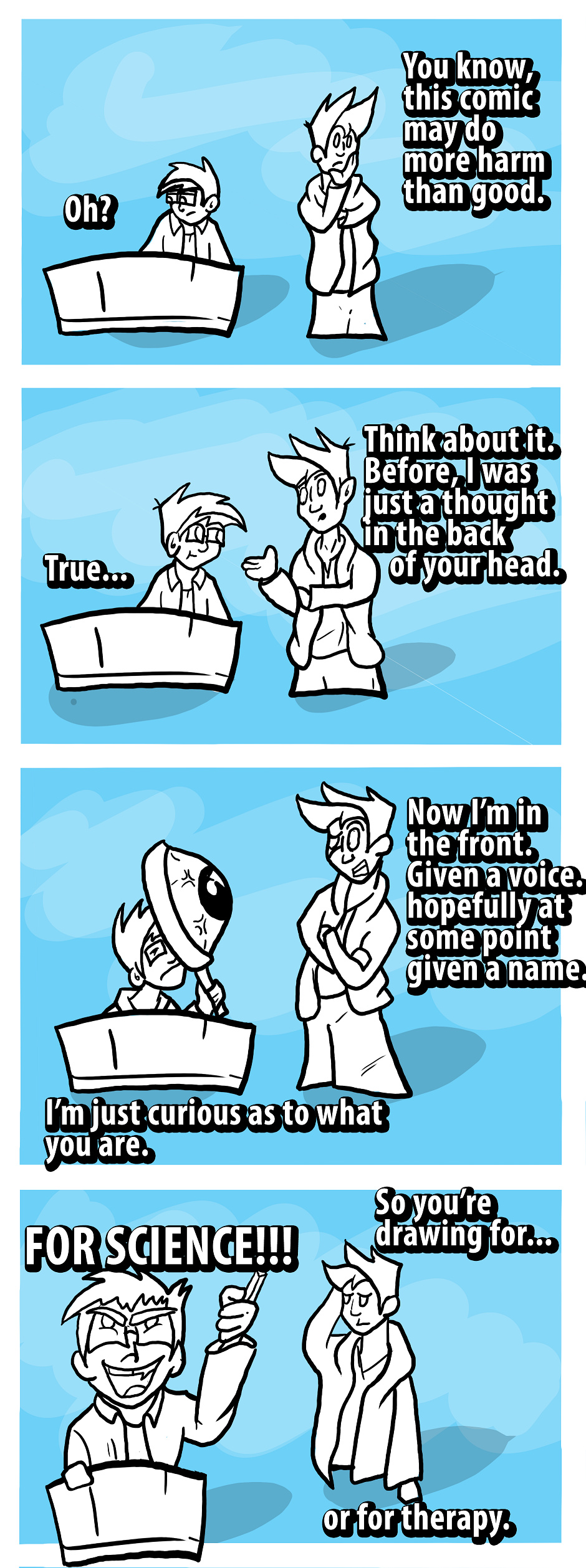 Some random slice of life comics about me and my spilt personality. No that is not a typo, I just don't feel it is a full split just a little spilled. Maybe this is comedy, maybe self therapy, anyway buckle up and enjoy or cringe to your hearts content.