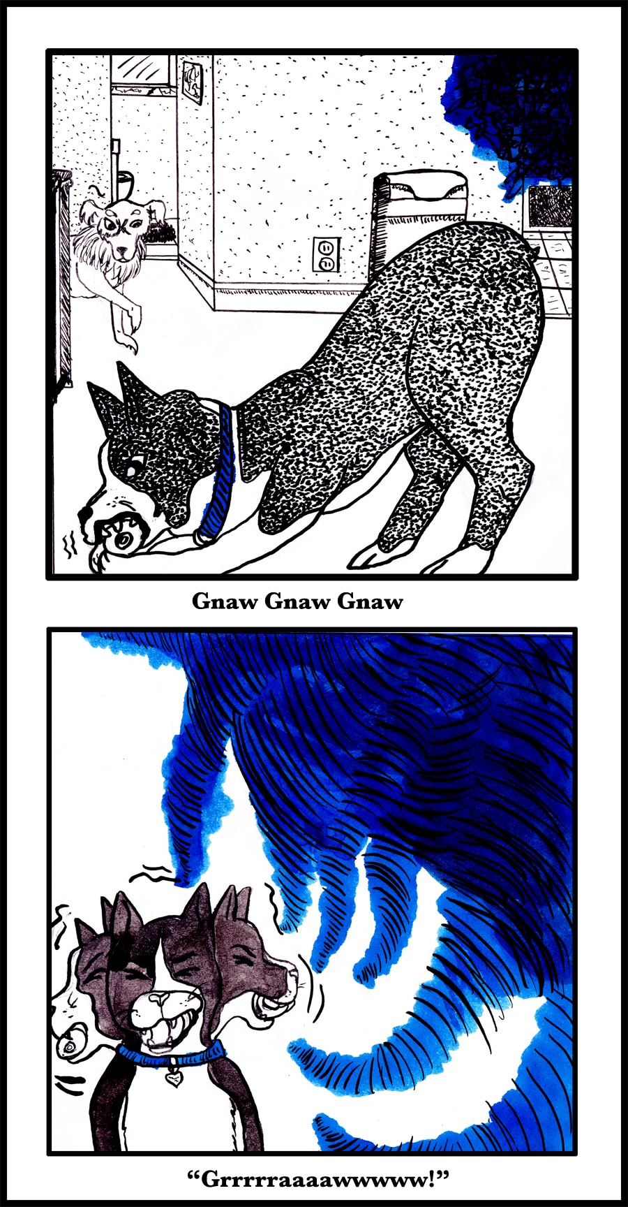 Again, wonky art, but did I ever have a gay ole time sketching and inking these. My partner and I work on this comic "together." And by "together," I mean he'll say something like "I just imagine Jack as a veteran of psychic wars battling Lovecraftian beasts."