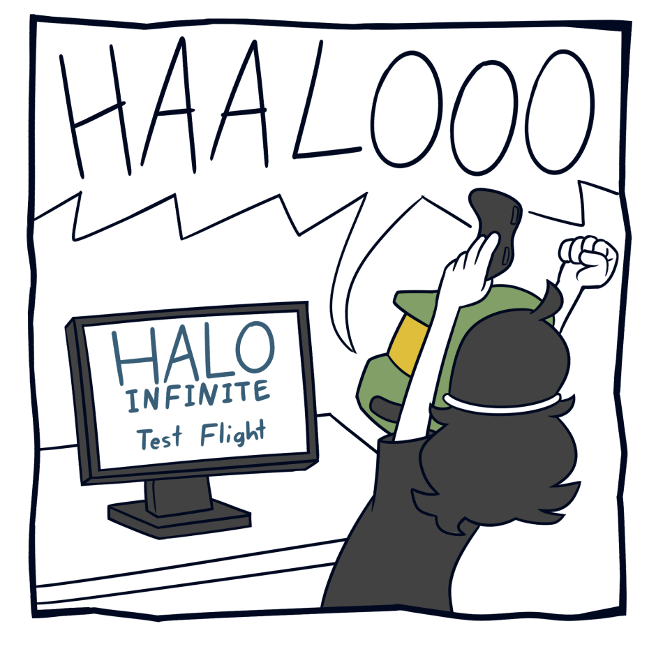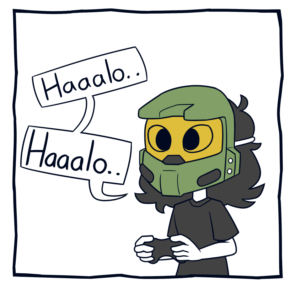 Sorry I haven't updated, been busy working a lot just to be financially stable, but been taking a break so I can play the Halo Infinite Test Flight and there is one more this weekend. And I'm SO hyped for it. Thought I make this comic and knock two birds with one stone with trying to post a comic this month and promote my Twitch where I'll be streaming The Halo Infinite test!