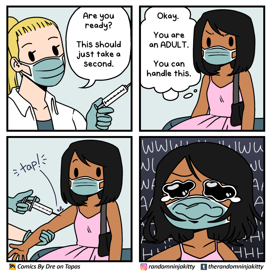 I was a big (but lightweight (so much that the wind can even push me off the floor) crying baby when I get my shot as a little kid. Now I get my vaccine twice and felt nothing, that must've been an embarrassment for me back then.