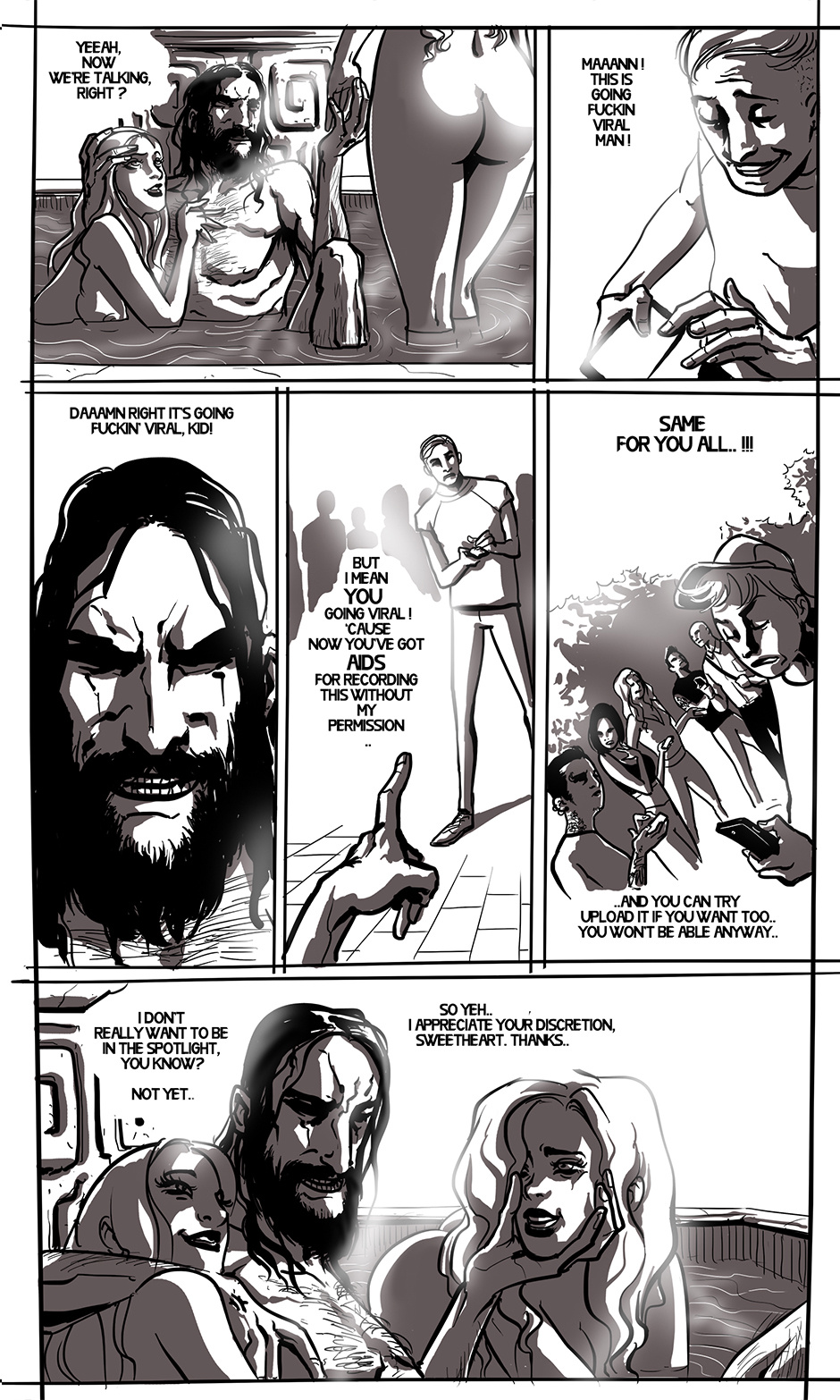He's now warming up, sending some people straight to the 'heaven'. and decides to take a sacred bath to refresh himself...in public. with hookers. ''maybe I'd think it twice before taking out that phone, if i were you..''