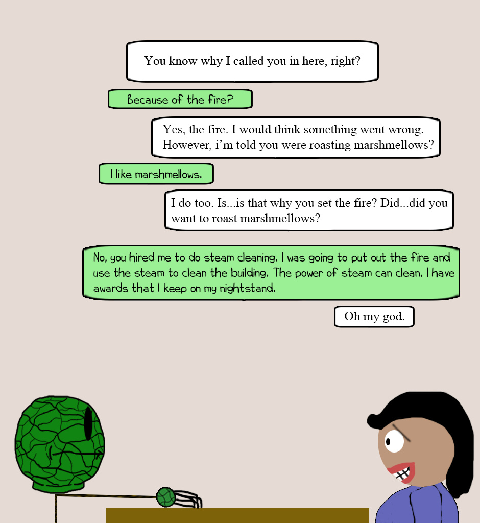 Captain Cabbagehead got a job as a steamcleaner. He lasted for a week.