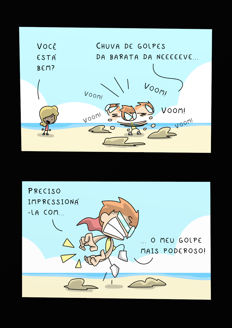 Para contar a saga de Hero e Siri no Grande Torneio de Artes Marciais, fiz essa HQ com traços super simples e uma história leve. A ideia é expressar as abobrinhas da minha cabeça e, ao mesmo tempo, contribuir para o lazer de quem se identifica com essa categoria de humor.