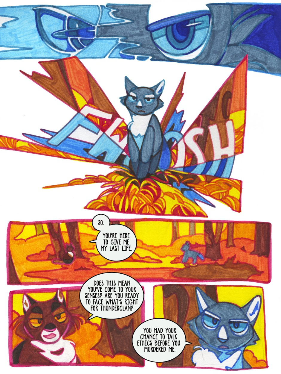 "Warriors: Twin Shadows" explores a parallel universe wherein Rusty never left his twoleg home. Tigerstar killed Bluestar early on, and he currently stands as ThunderClan's leader—destiny will not be so easily outdone, however, and StarClan has plans for everyone's favorite kittypet.