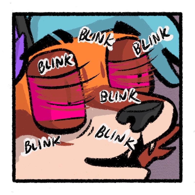 This is kind of a joke from Futurama that we’re constantly doing to each other. The blinks were originally animated on my insta, but since we can’t do gifs I had to figure out how to draw intense blinking. Thanks for readin!