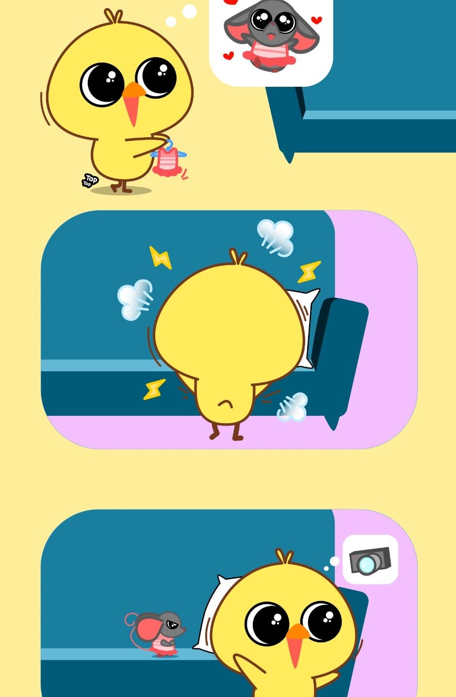Sigue las mini historietas de esta adorable pareja de pollitos. Amor, comedia, giros inesperados y mucho más en estos pequeños y tiernos relatos. Esta serie se actualiza los lunes y sábados