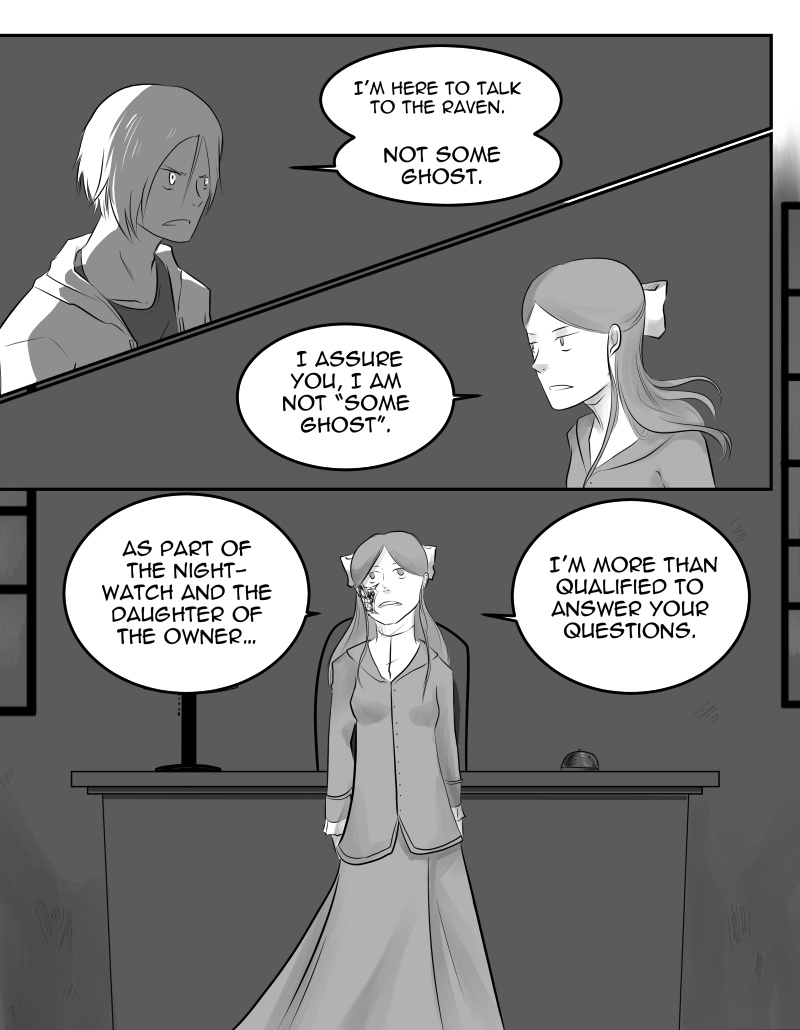 The Grant Heiss hotel is the one actually haunted place on the Earth, host to ghosts and humans alike. A seal on the dead souls that refuse to move, a resting place for the traveling living, and the workplace of one who almost hovers between the two worlds: the Nightwatch.