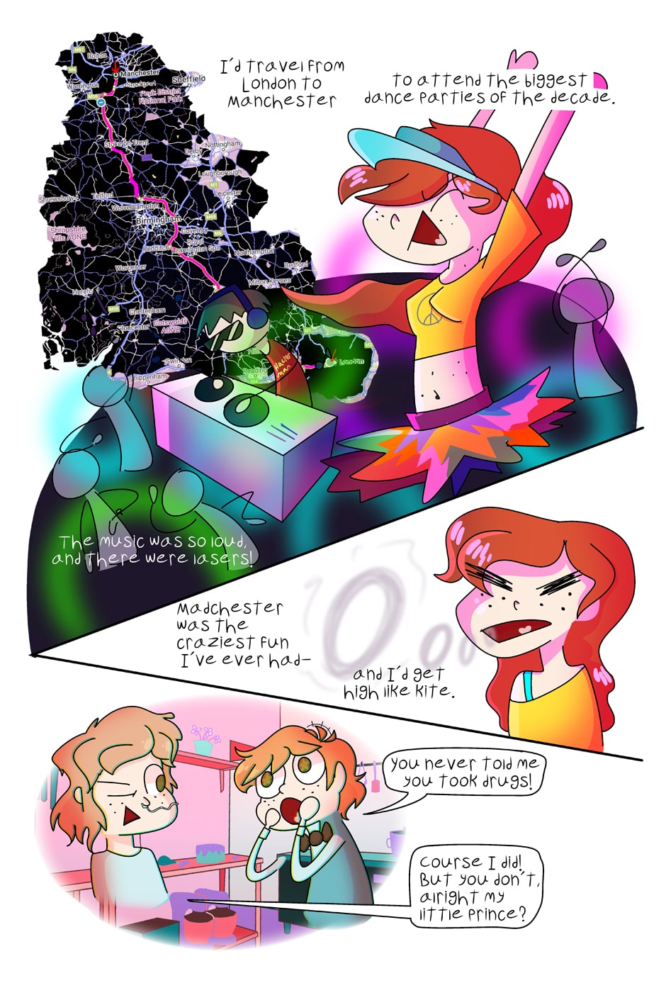 This story touches on queer issues, anti-capitalism and a lot of vaporwave music.