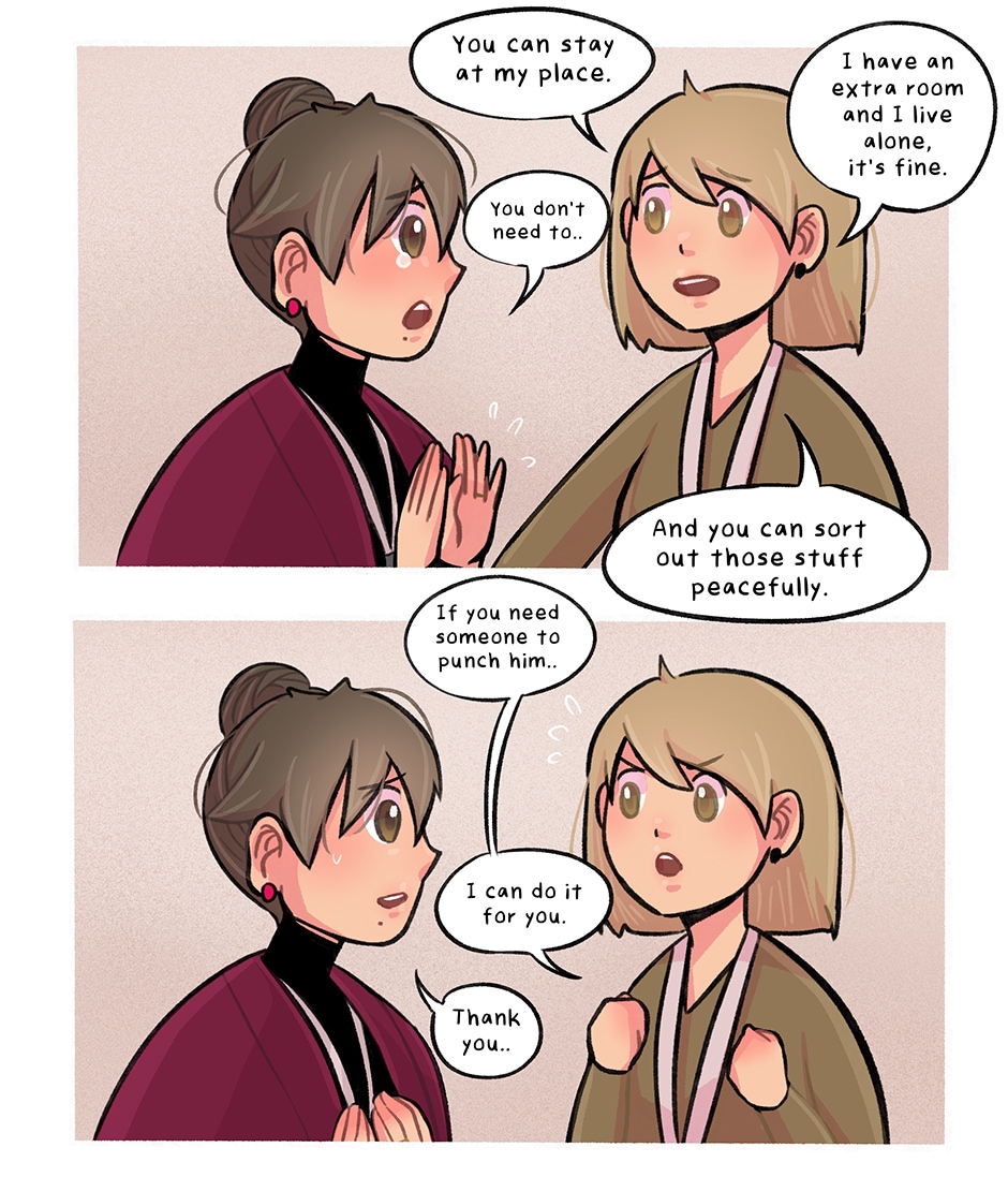 True friendship. Being ready to punch there cheating husband