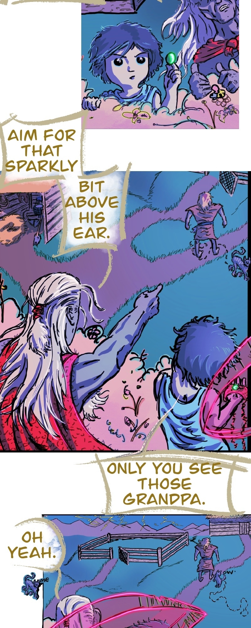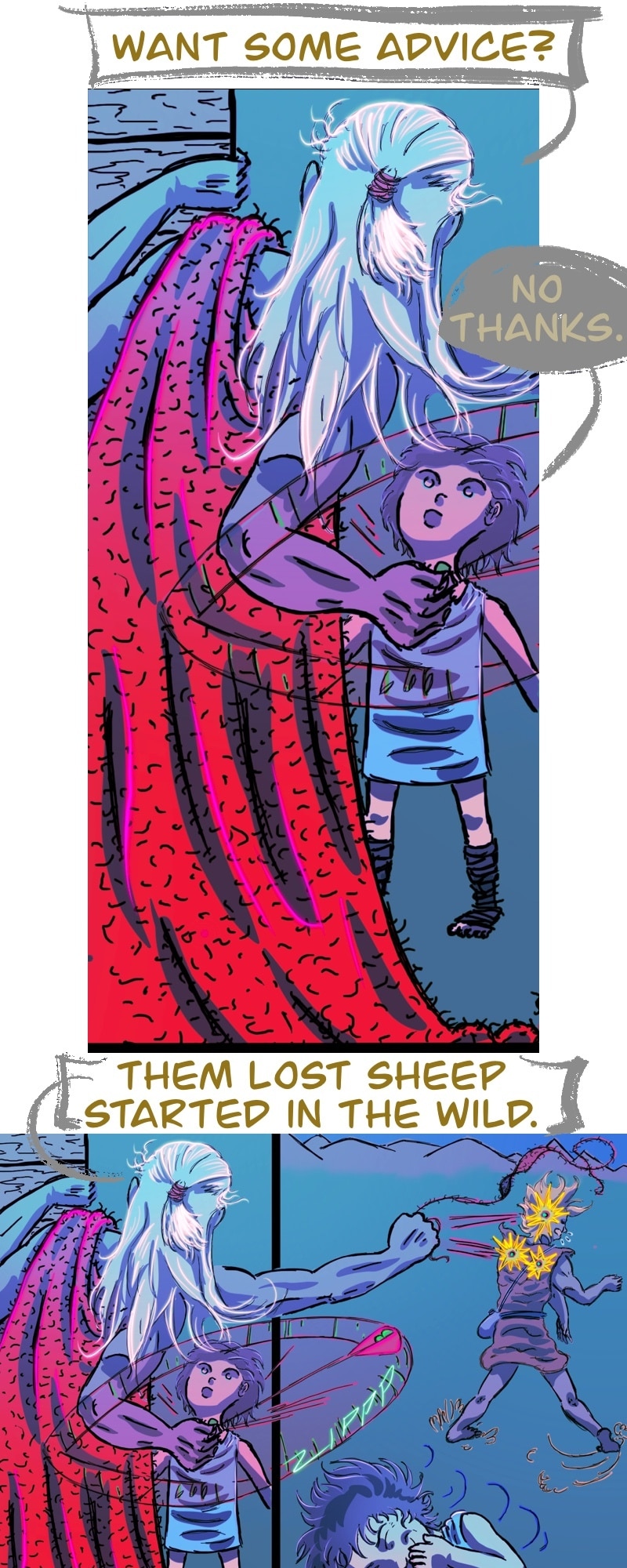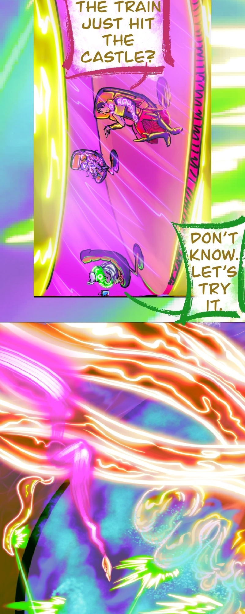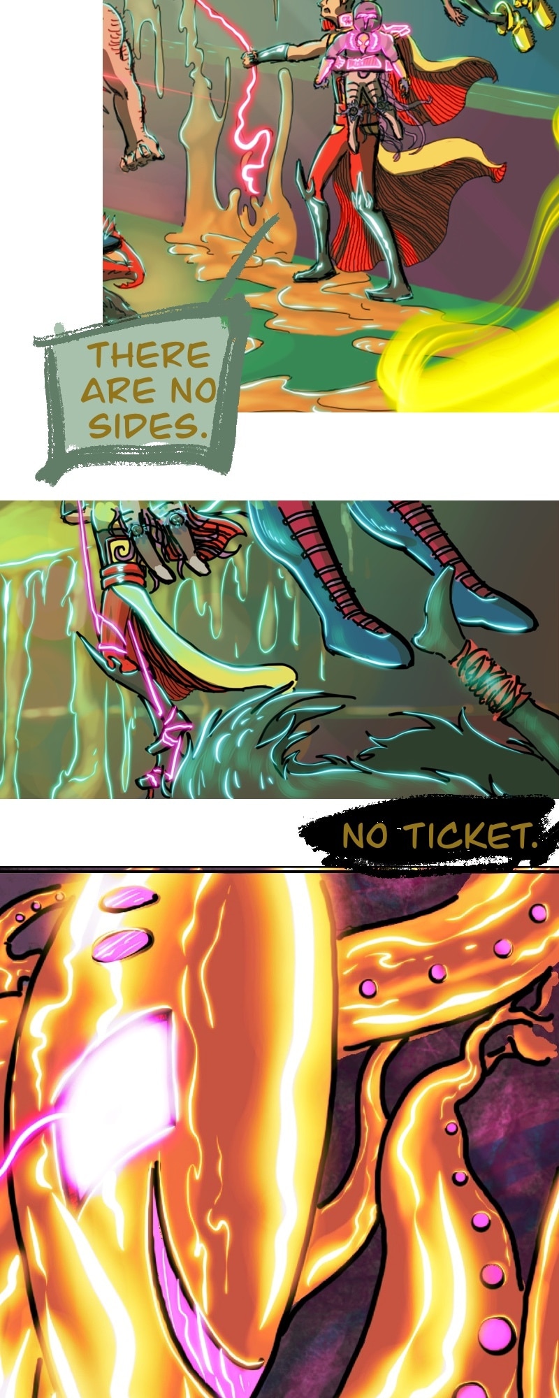 CHILL. Life’s short. Make yourself happy. This comic in this format is more about a chill scrolling vibe and less story driven. It does have a complex story in the background.