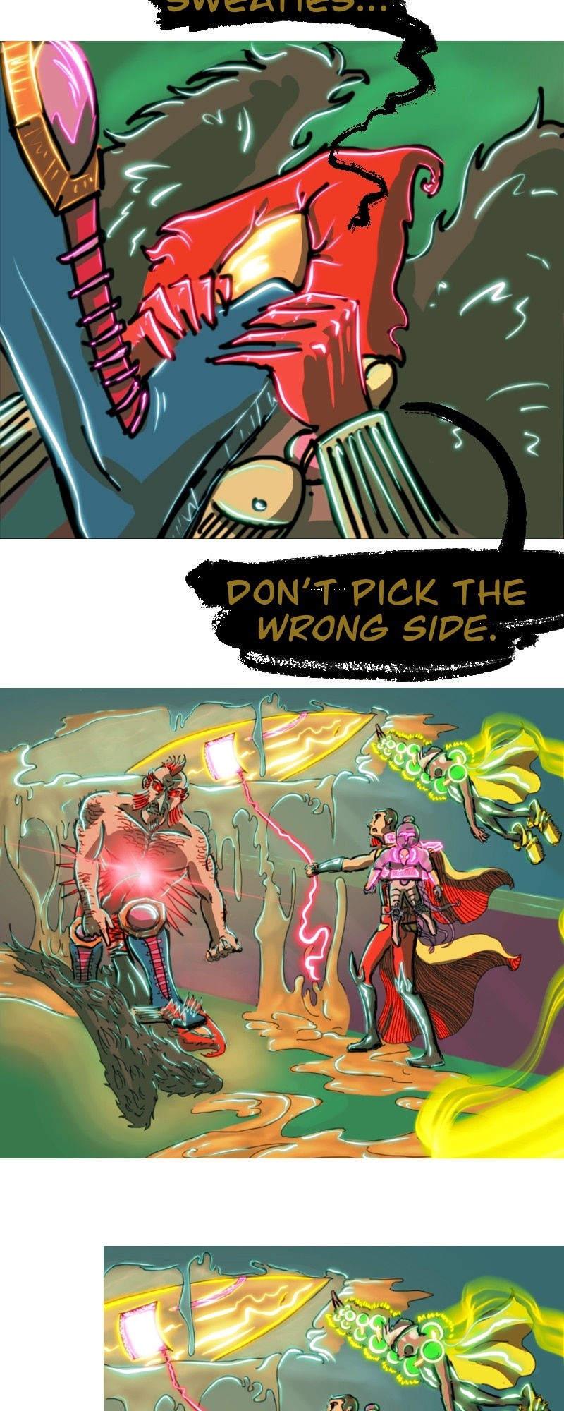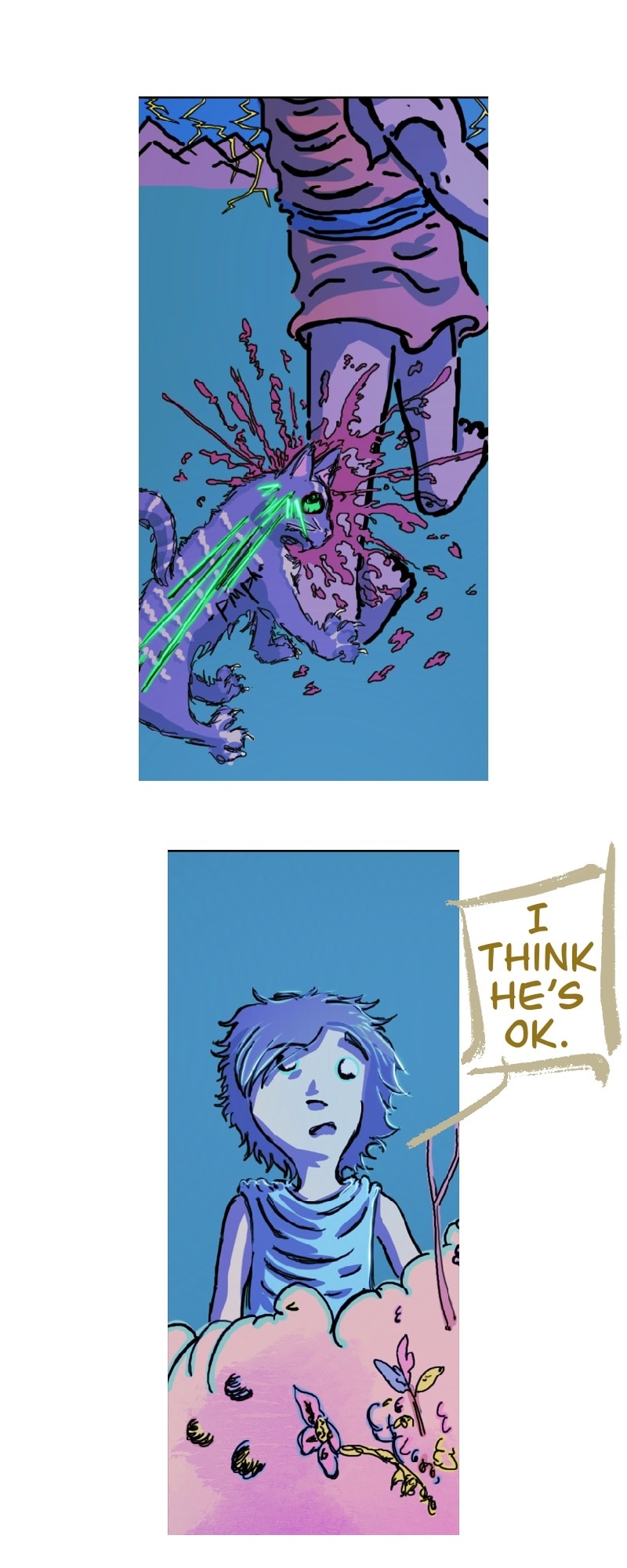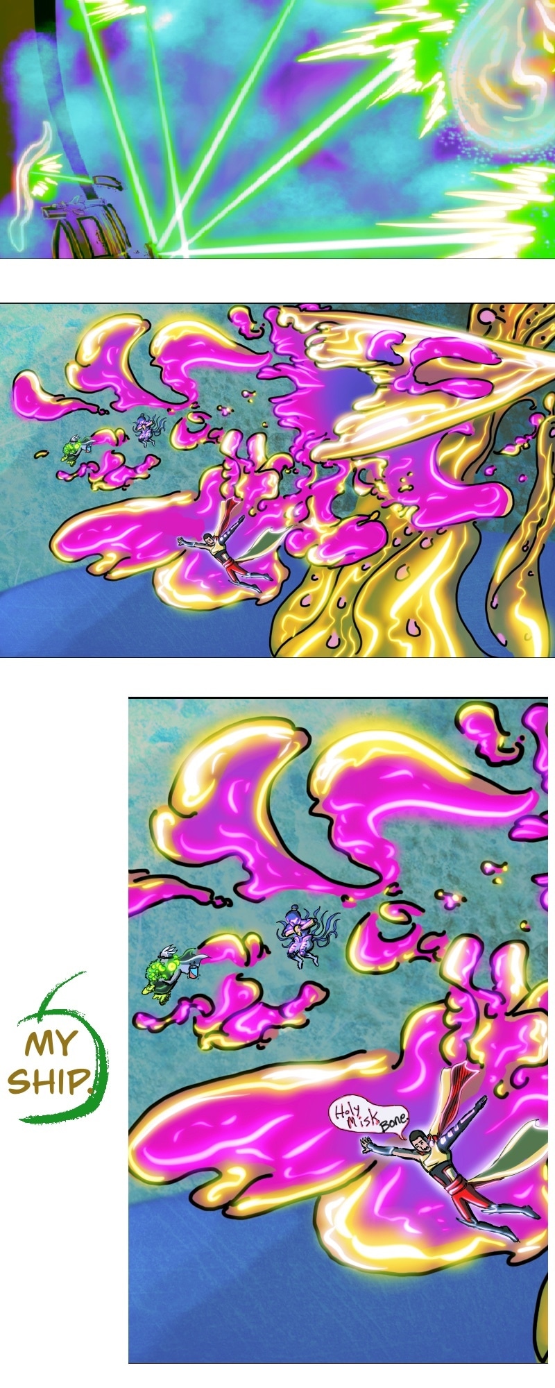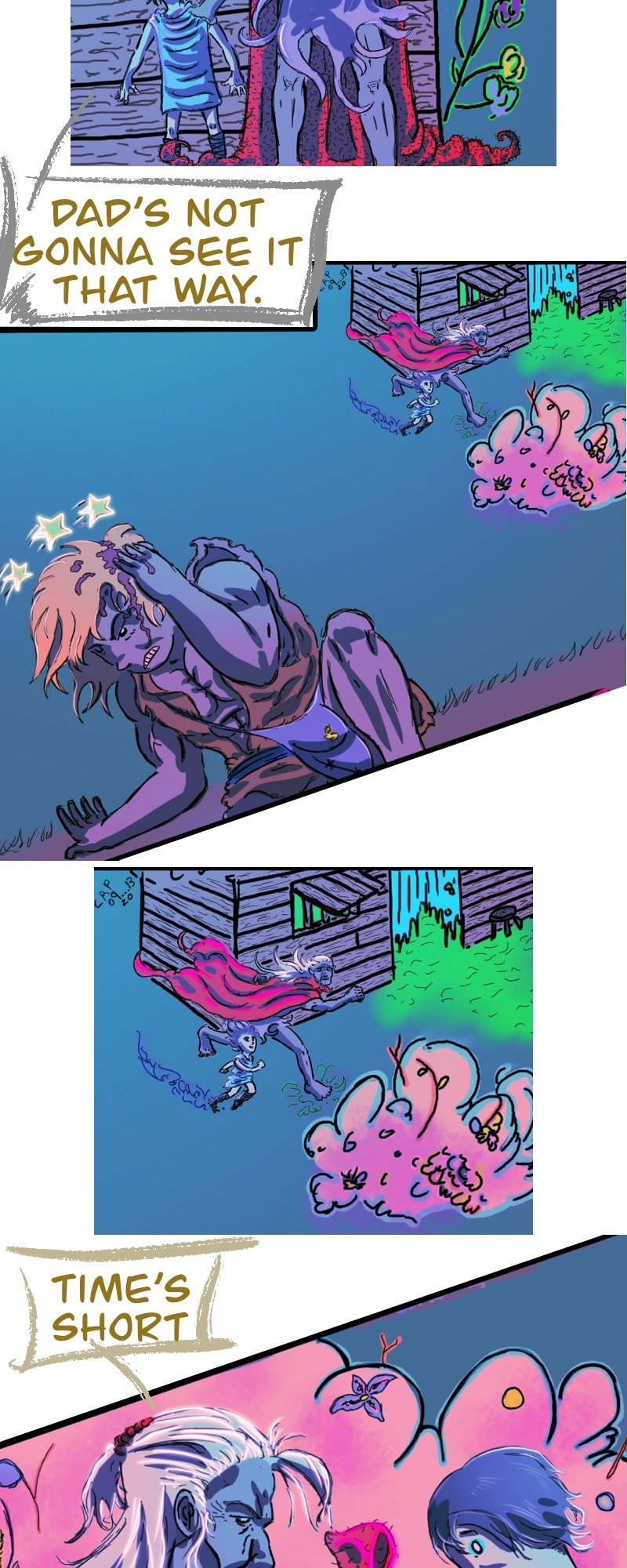 CHILL. Life’s short. Make yourself happy. This comic in this format is more about a chill scrolling vibe and less story driven. It does have a complex story in the background.