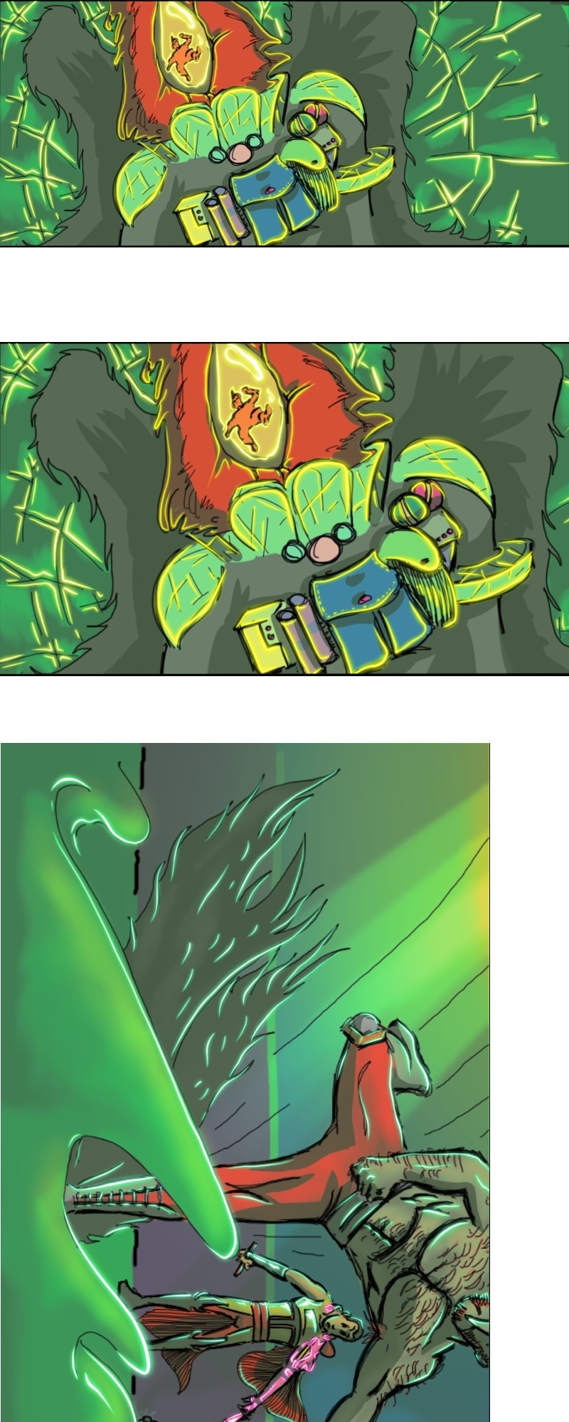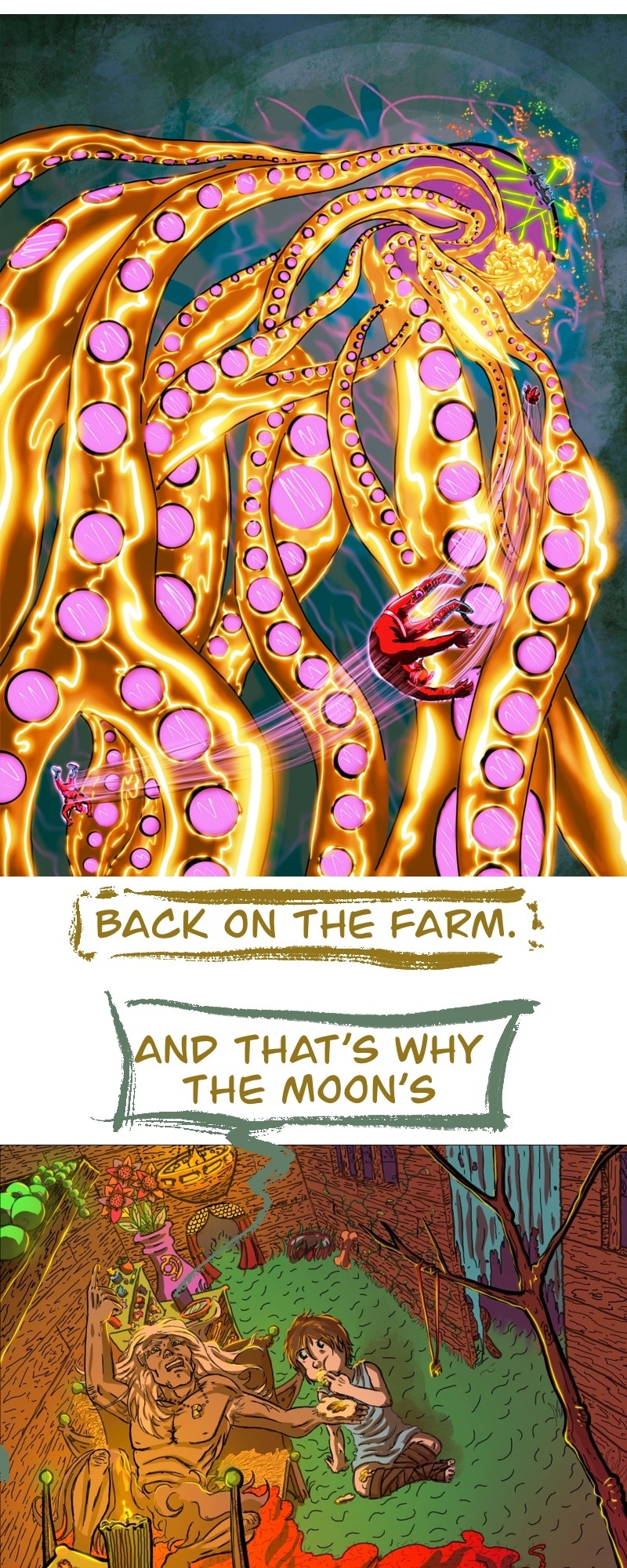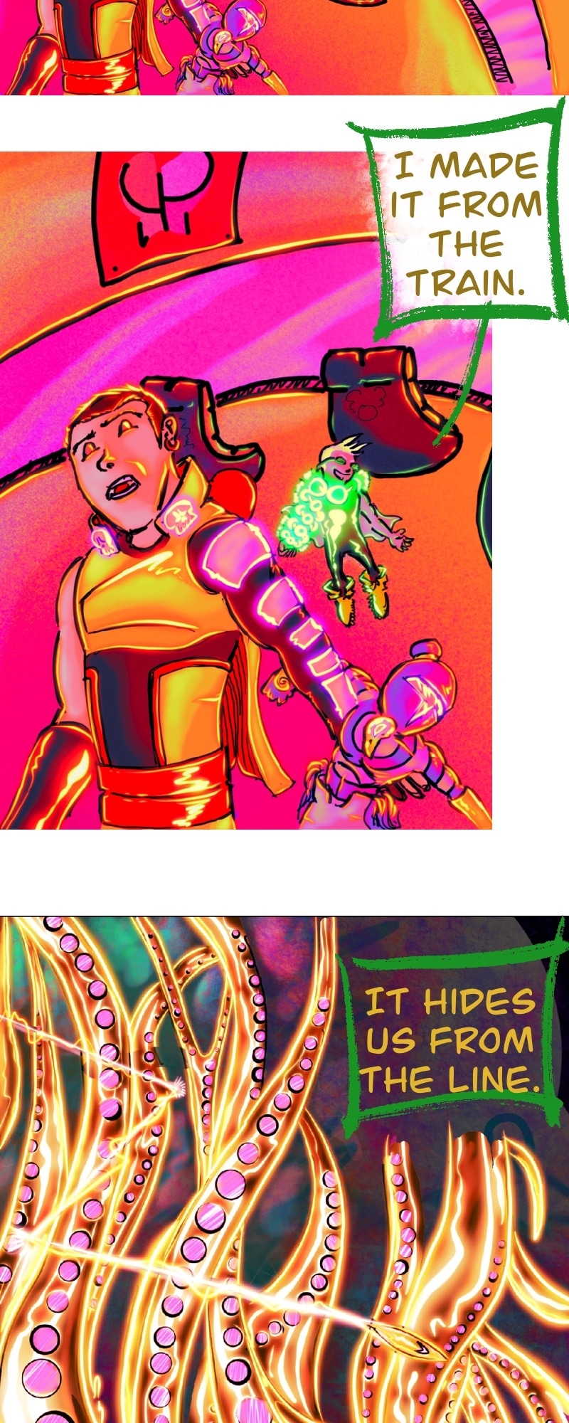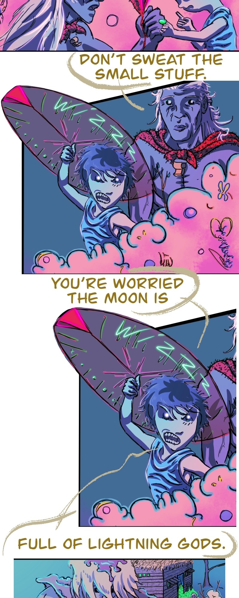 CHILL. Life’s short. Make yourself happy. This comic in this format is more about a chill scrolling vibe and less story driven. It does have a complex story in the background.