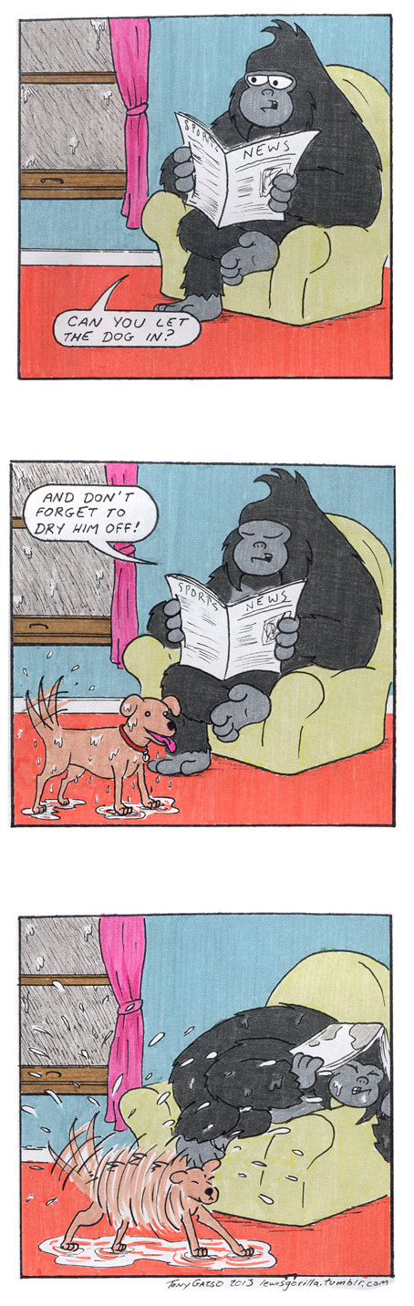 Love the stance of the shaking dog. Spot on.