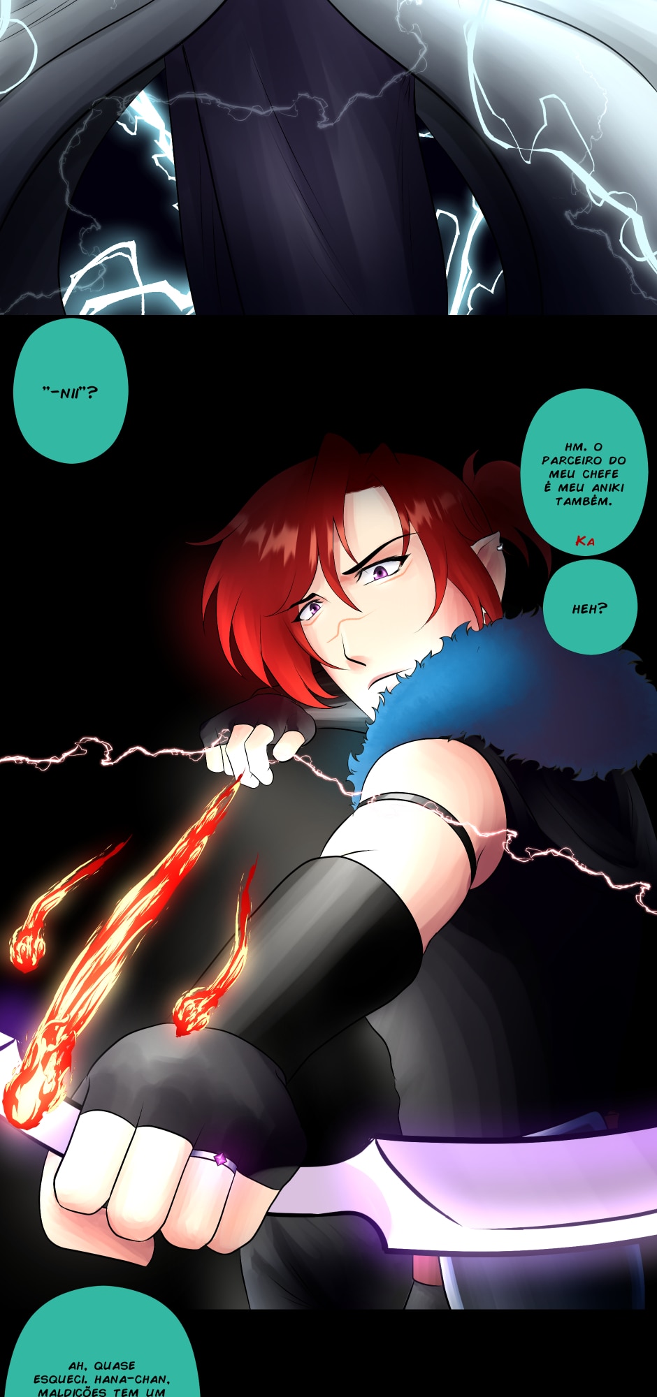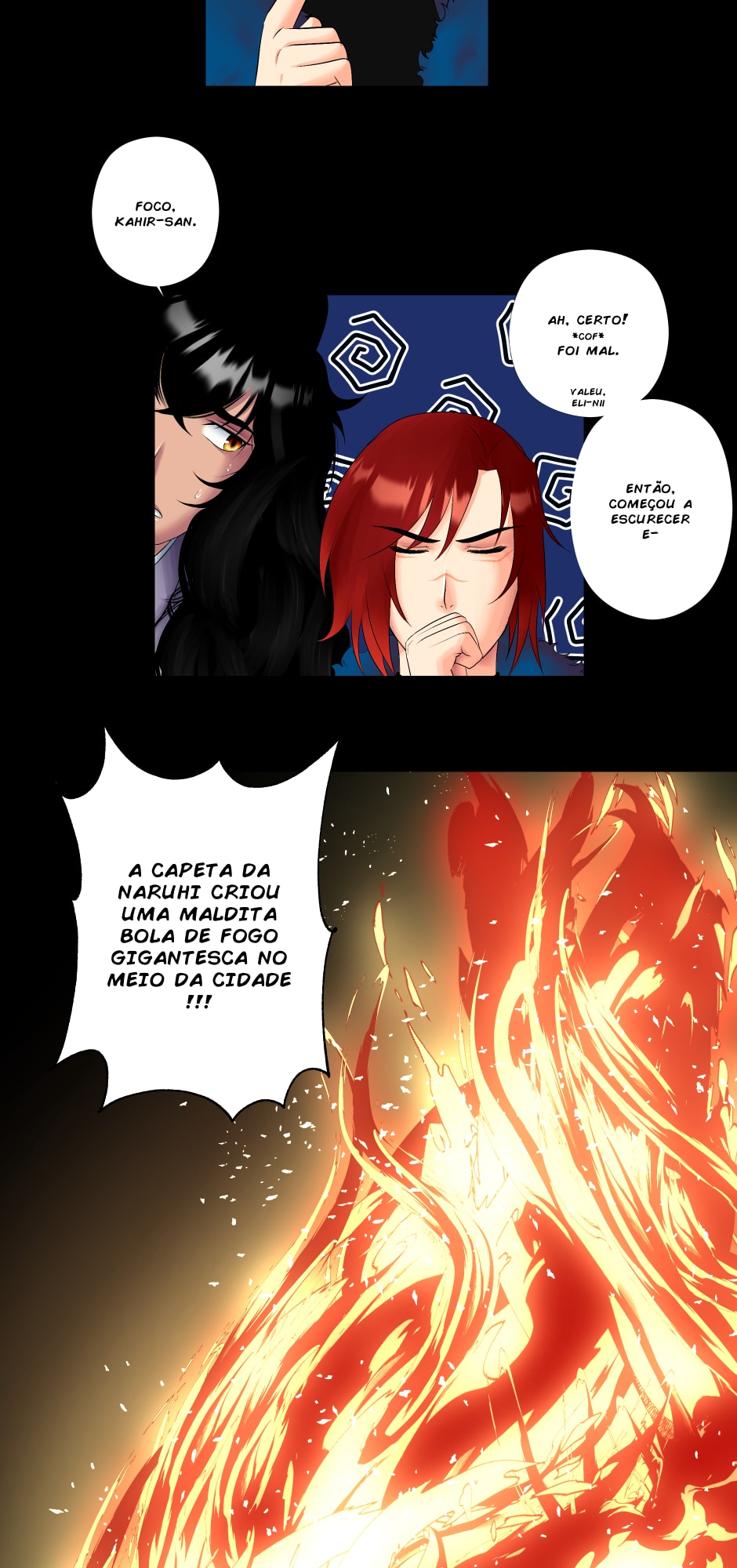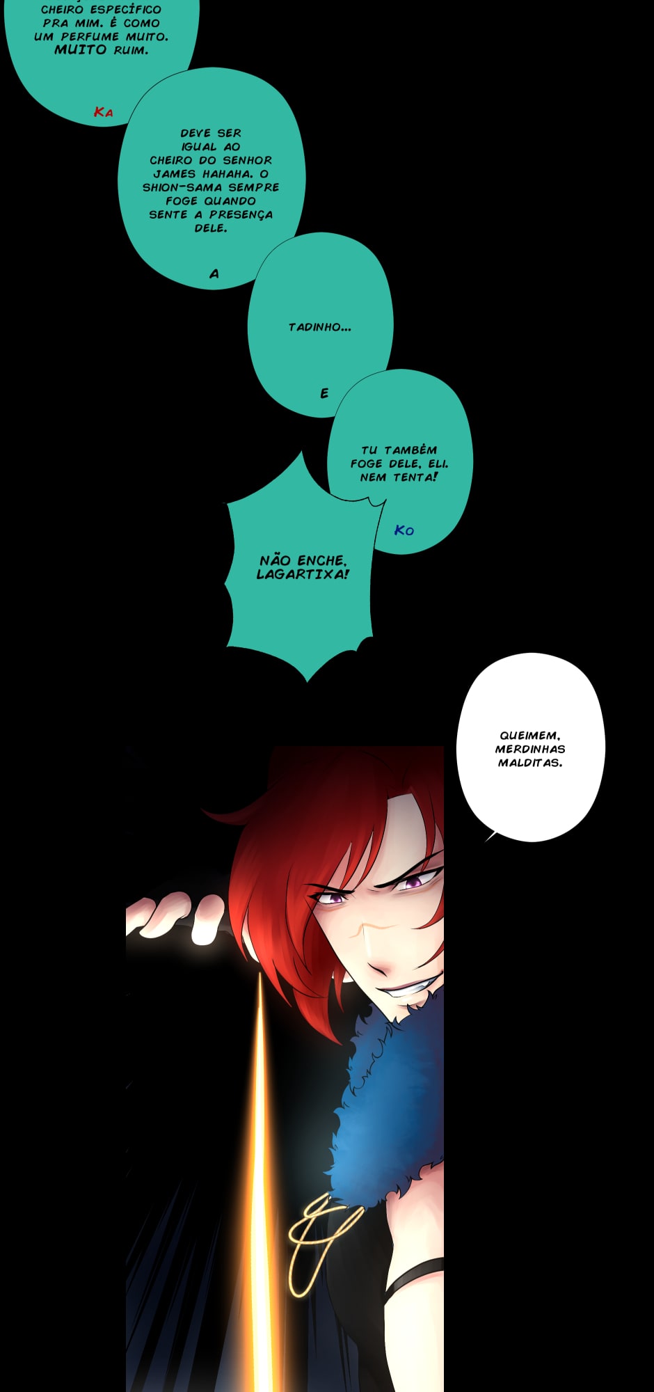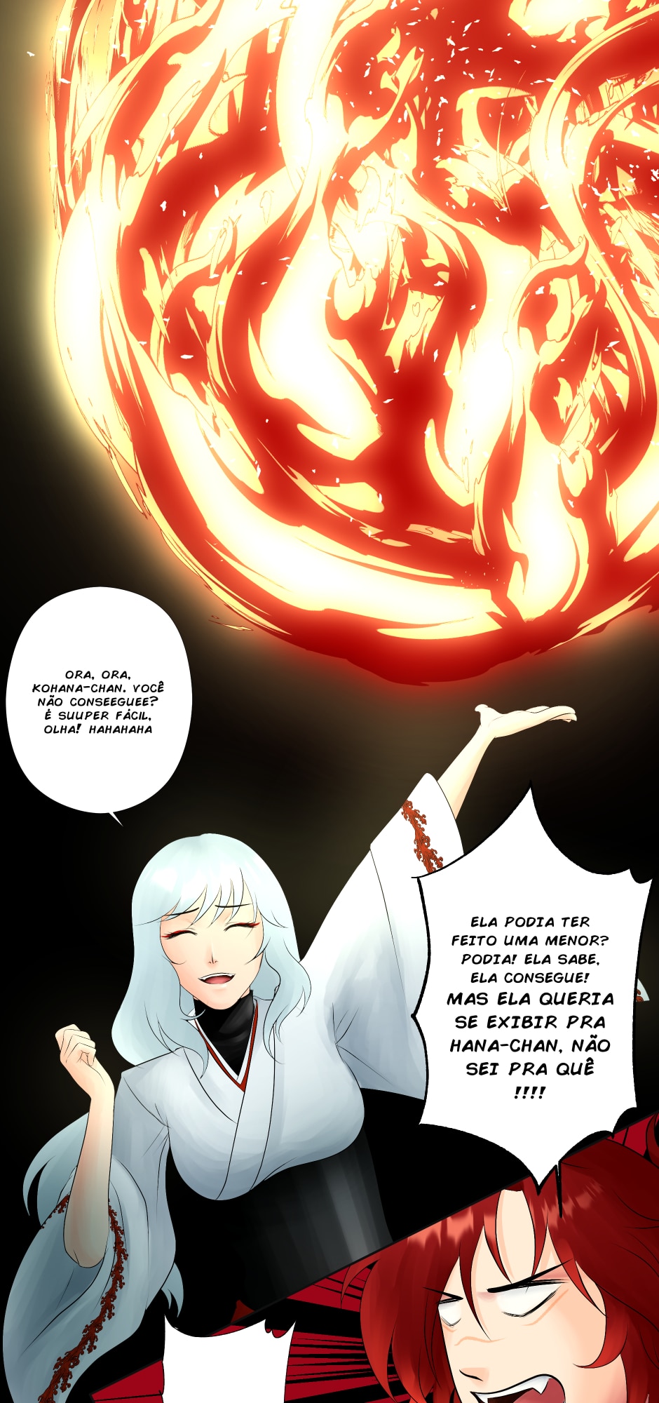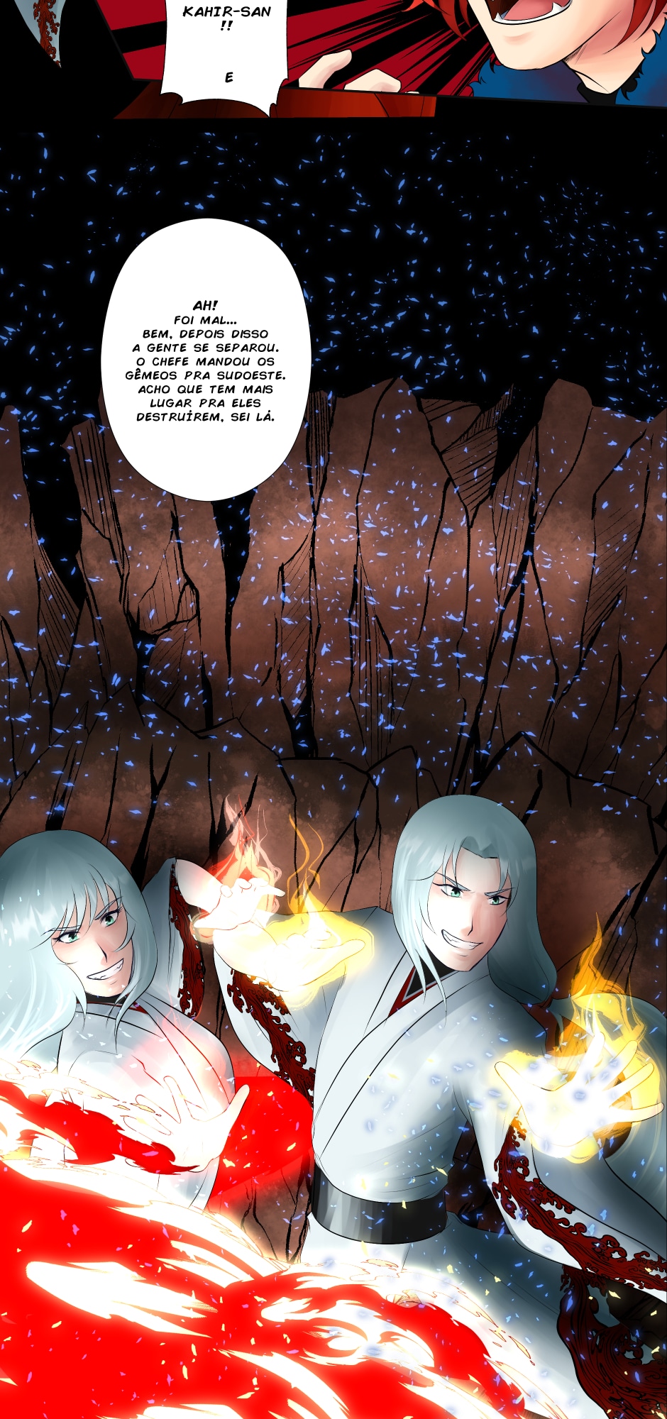 No canto, a cobra, o dragão e os ruivos observam incrédulos.