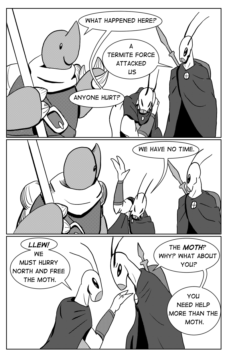 Borra, a young warrior beetle, has left his village to request aid from one of the great seats of power. But will he gain aid? Or will his people be swept aside? Regardless, the shadows grow impatient at the edges of the kingdom.