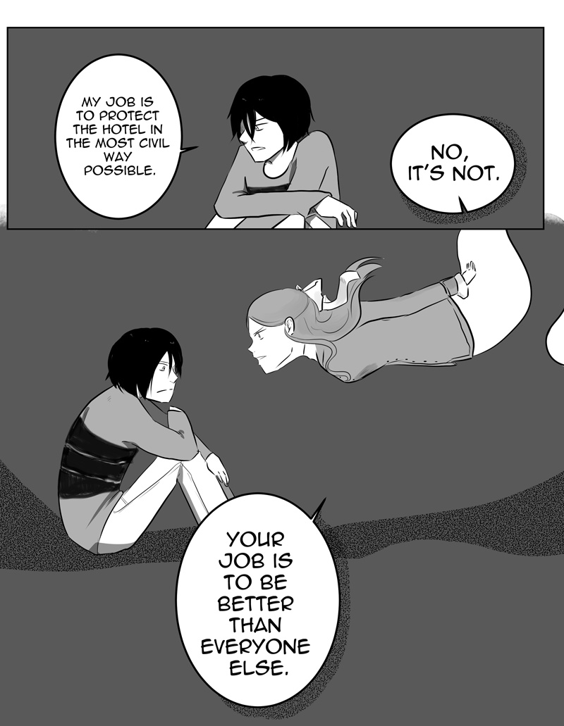 The Grant Heiss hotel is the one actually haunted place on the Earth, host to ghosts and humans alike. A seal on the dead souls that refuse to move, a resting place for the traveling living, and the workplace of one who almost hovers between the two worlds: the Nightwatch.